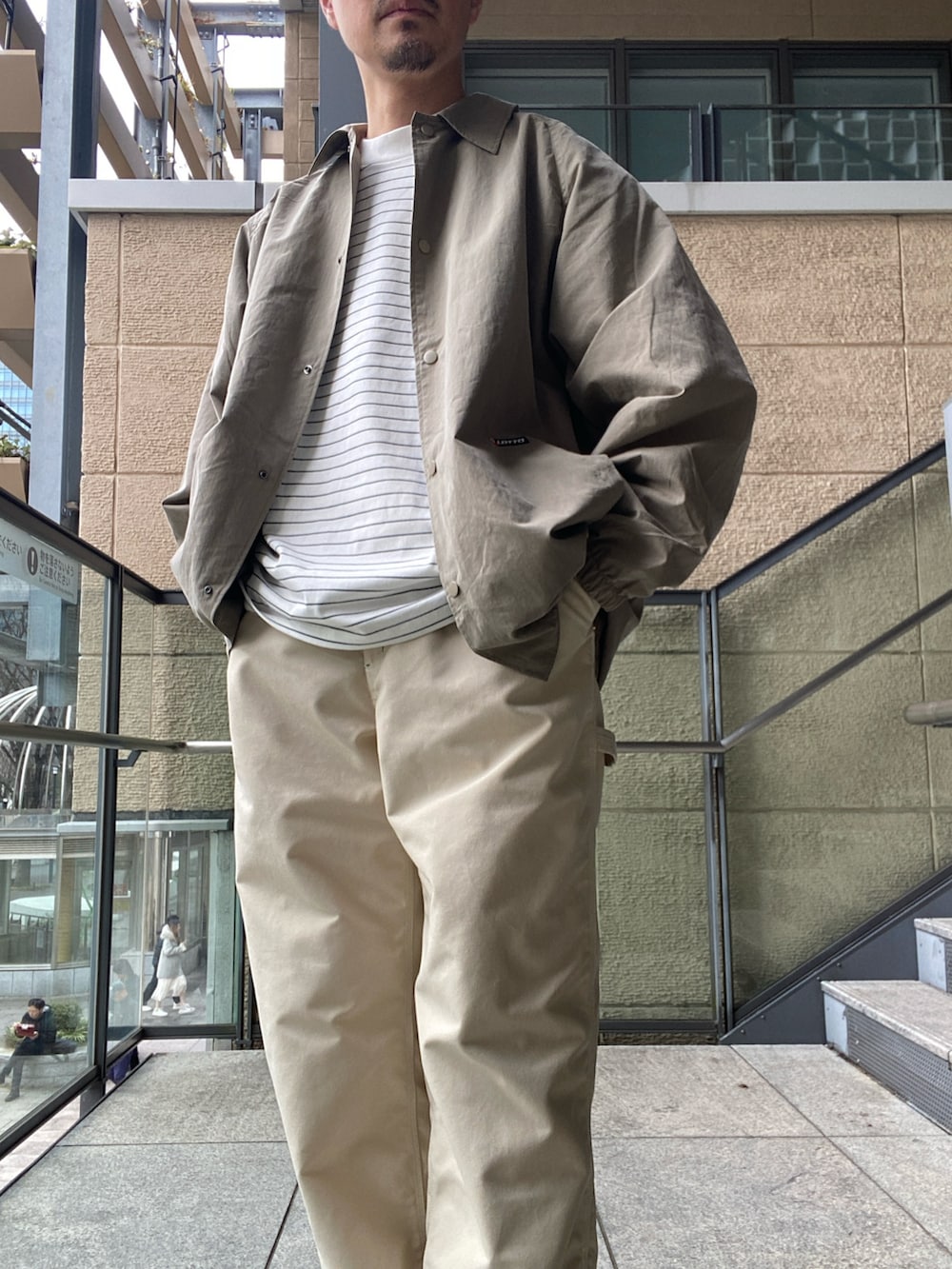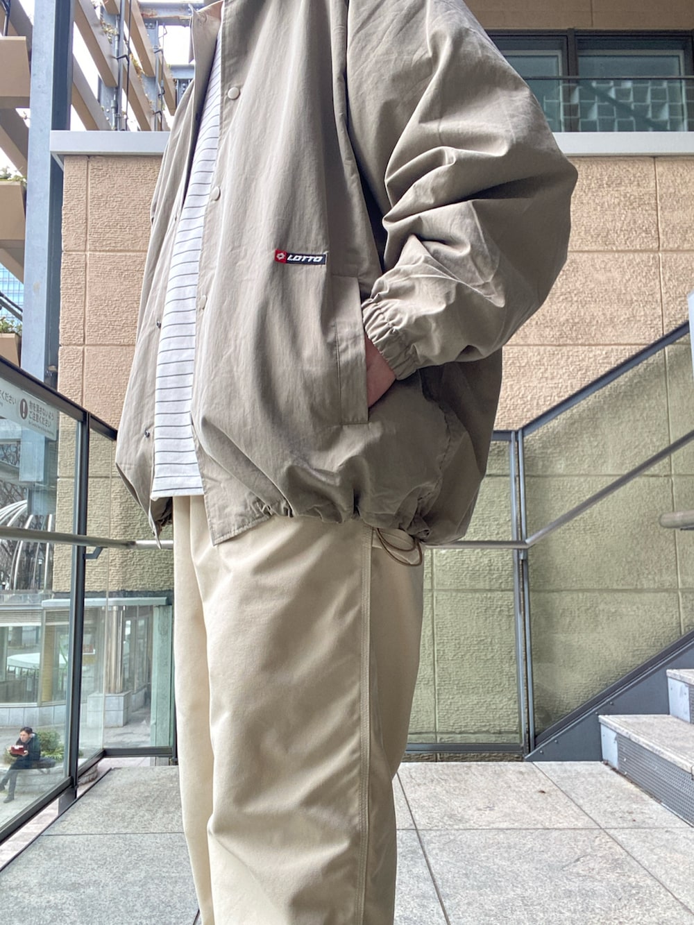 ルーズシルエットのコーチジャケットを、綿ナイロン素材で軽やかに表現。