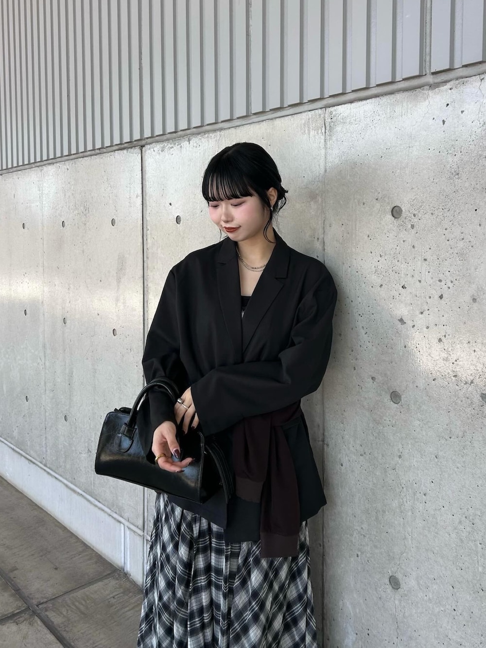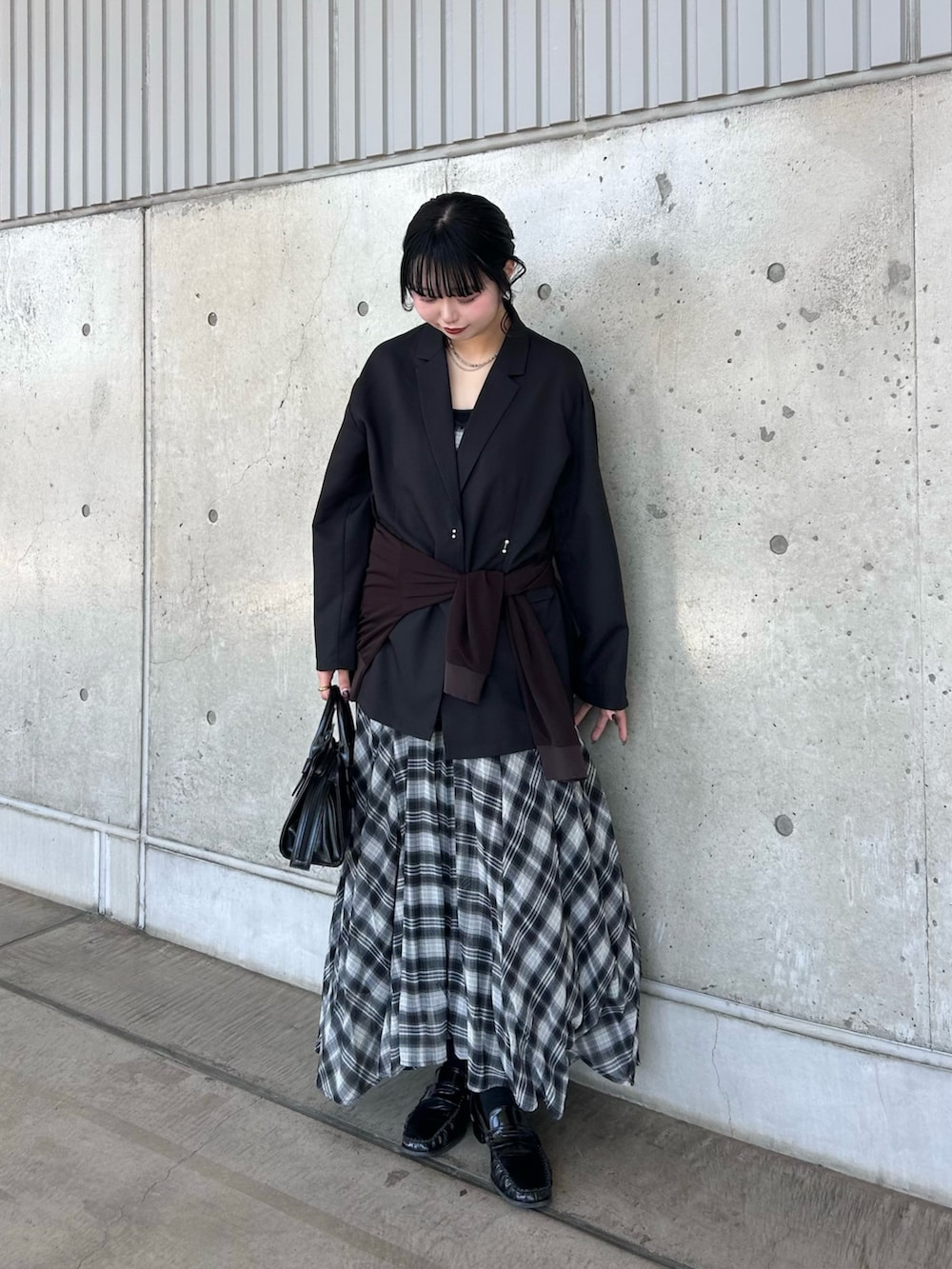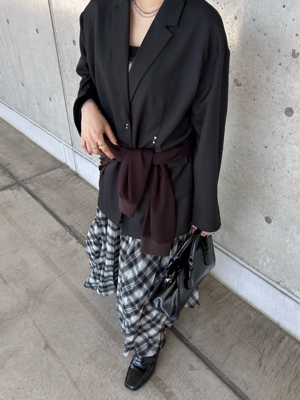 大きめのチェックと色合いが可愛いワンピースにジャケットを合わせて大人っぽいコーデにしてみました✨