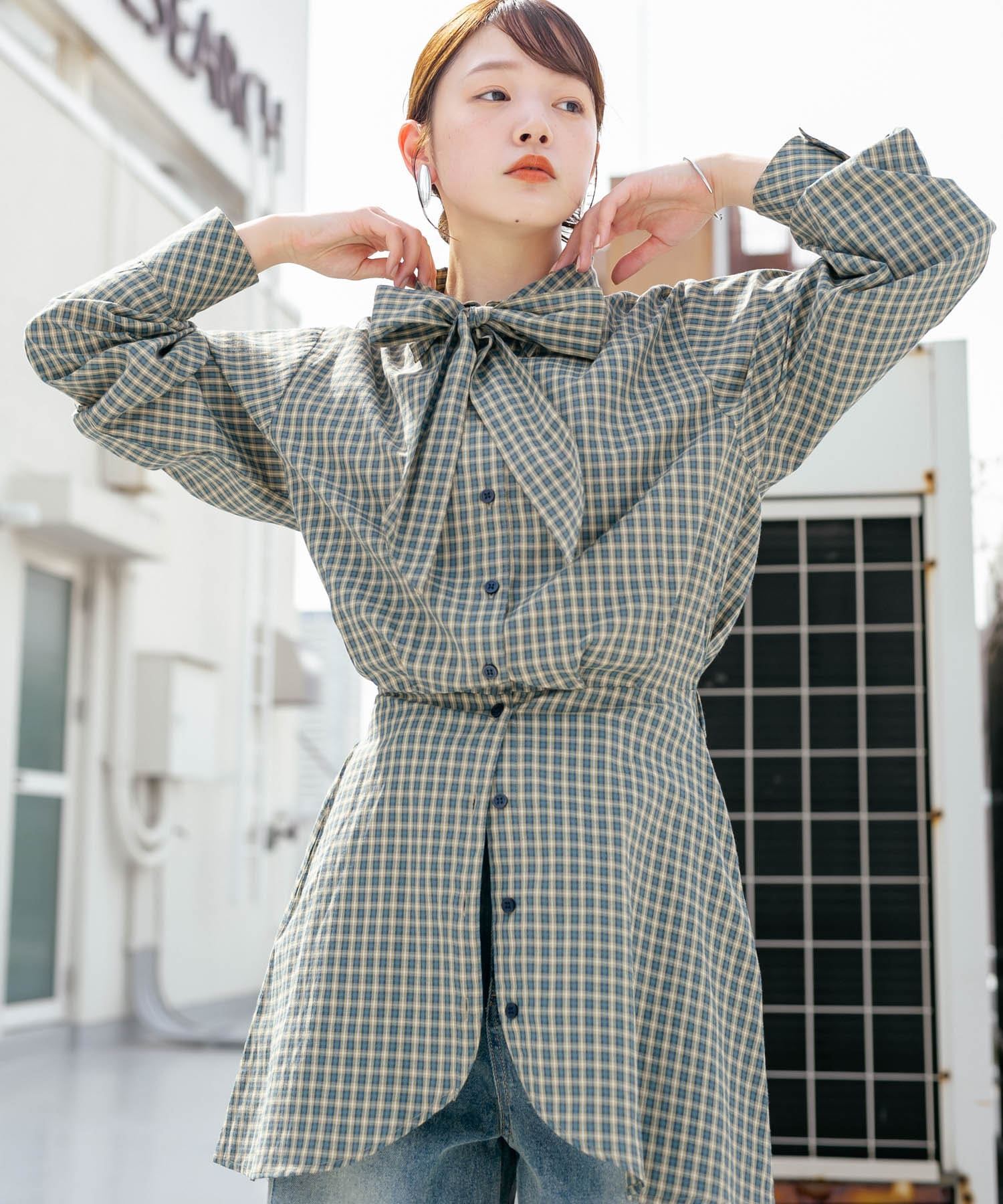 ウエストマークチェックシャツ