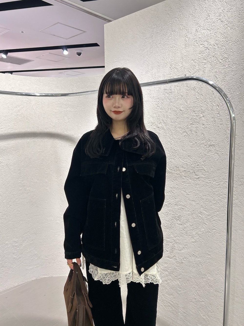 コーデュロイのセットアップの中にレースキャミを取り入れて甘めな合わせにしてみました!