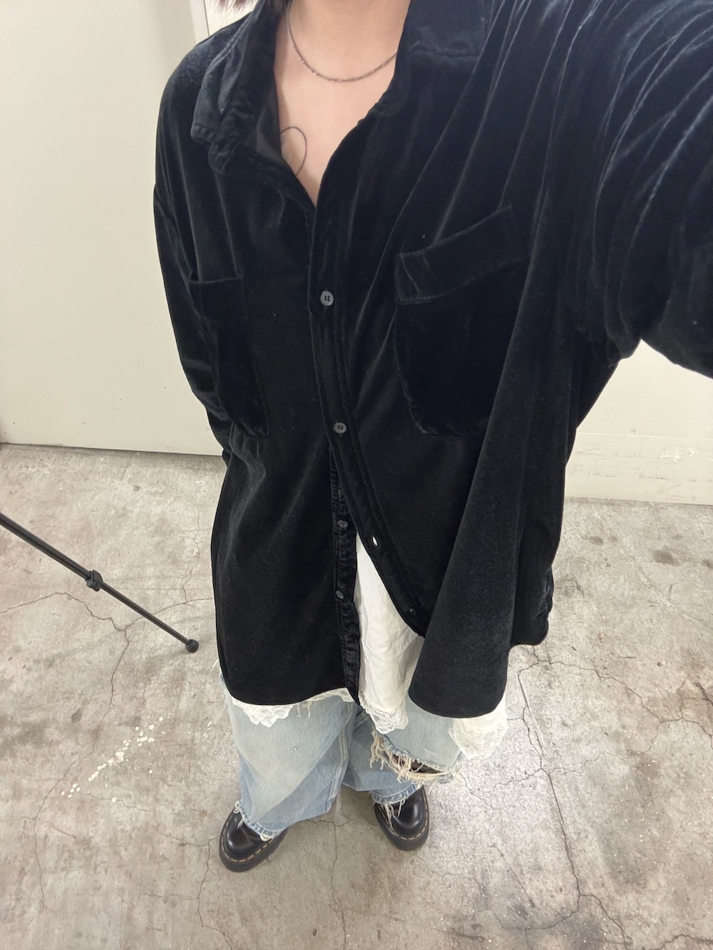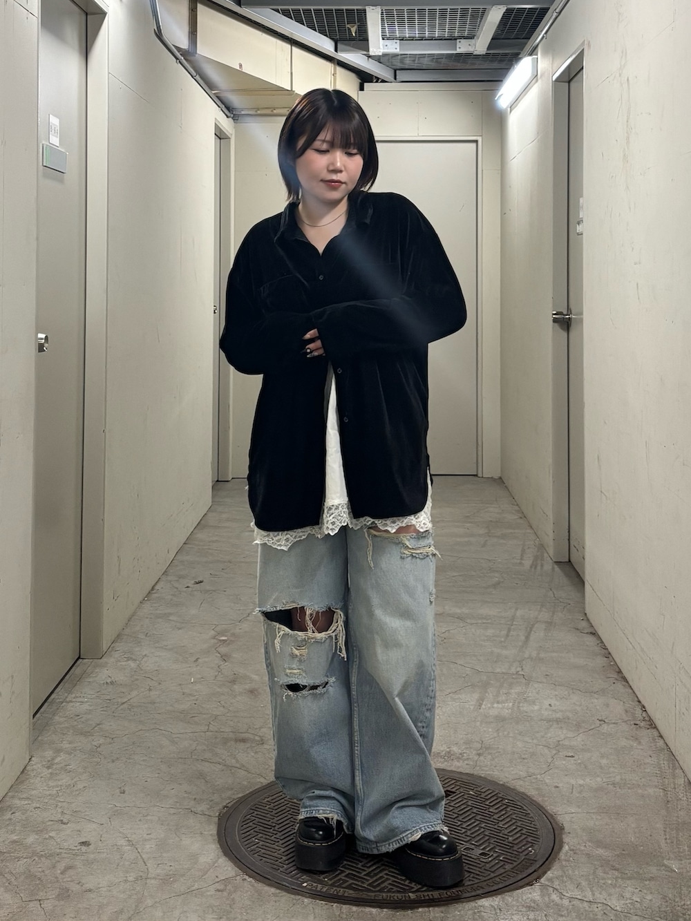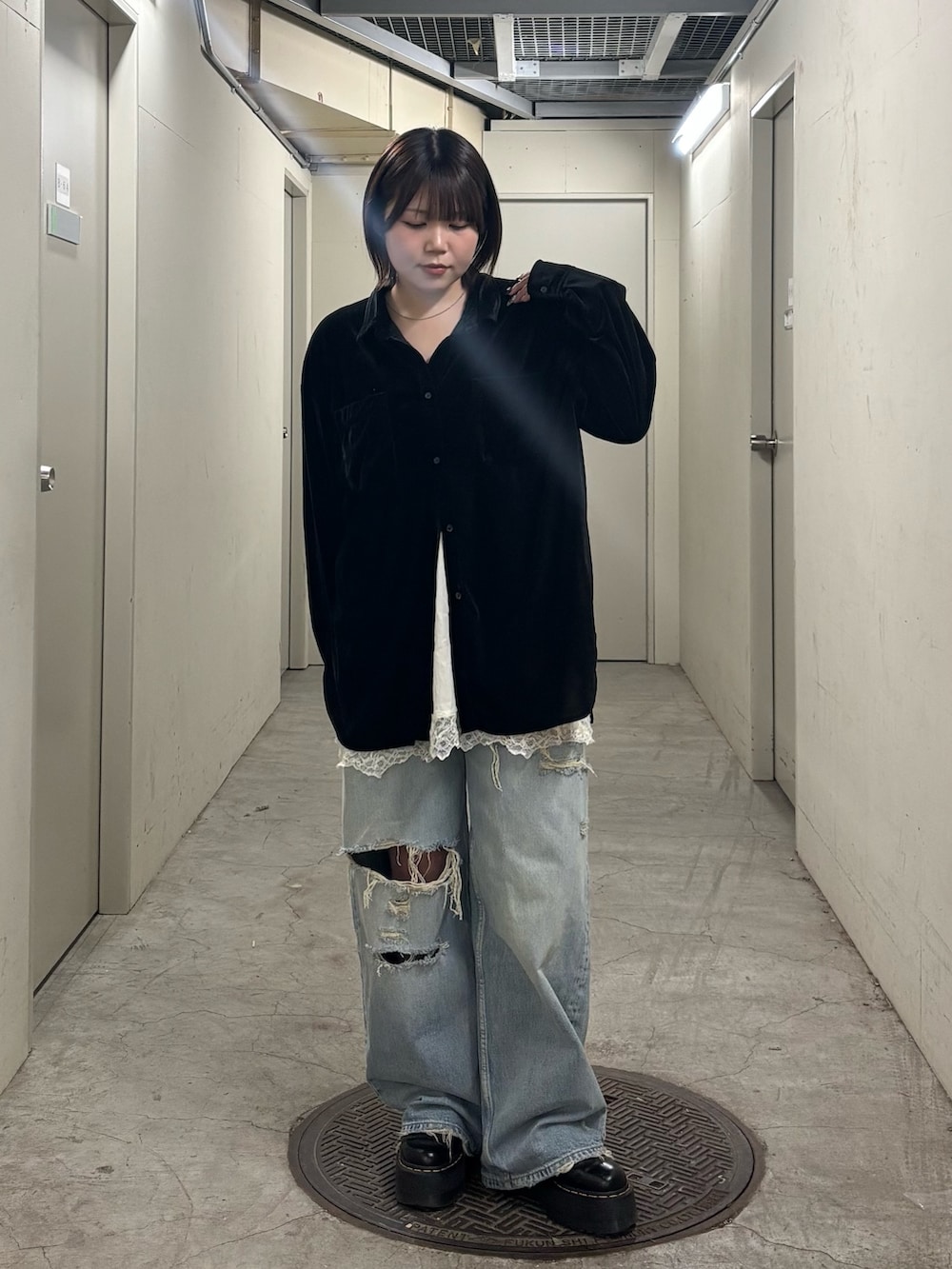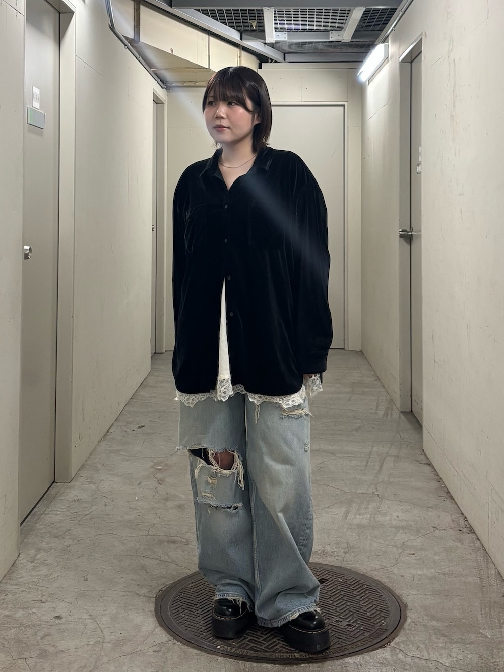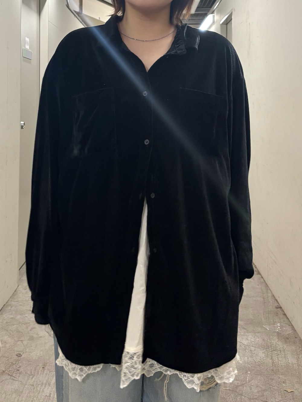 ・シャツからレースキャミをチラ見せしてレイヤードコーデに.ᐟ.ᐟ.ᐟ
