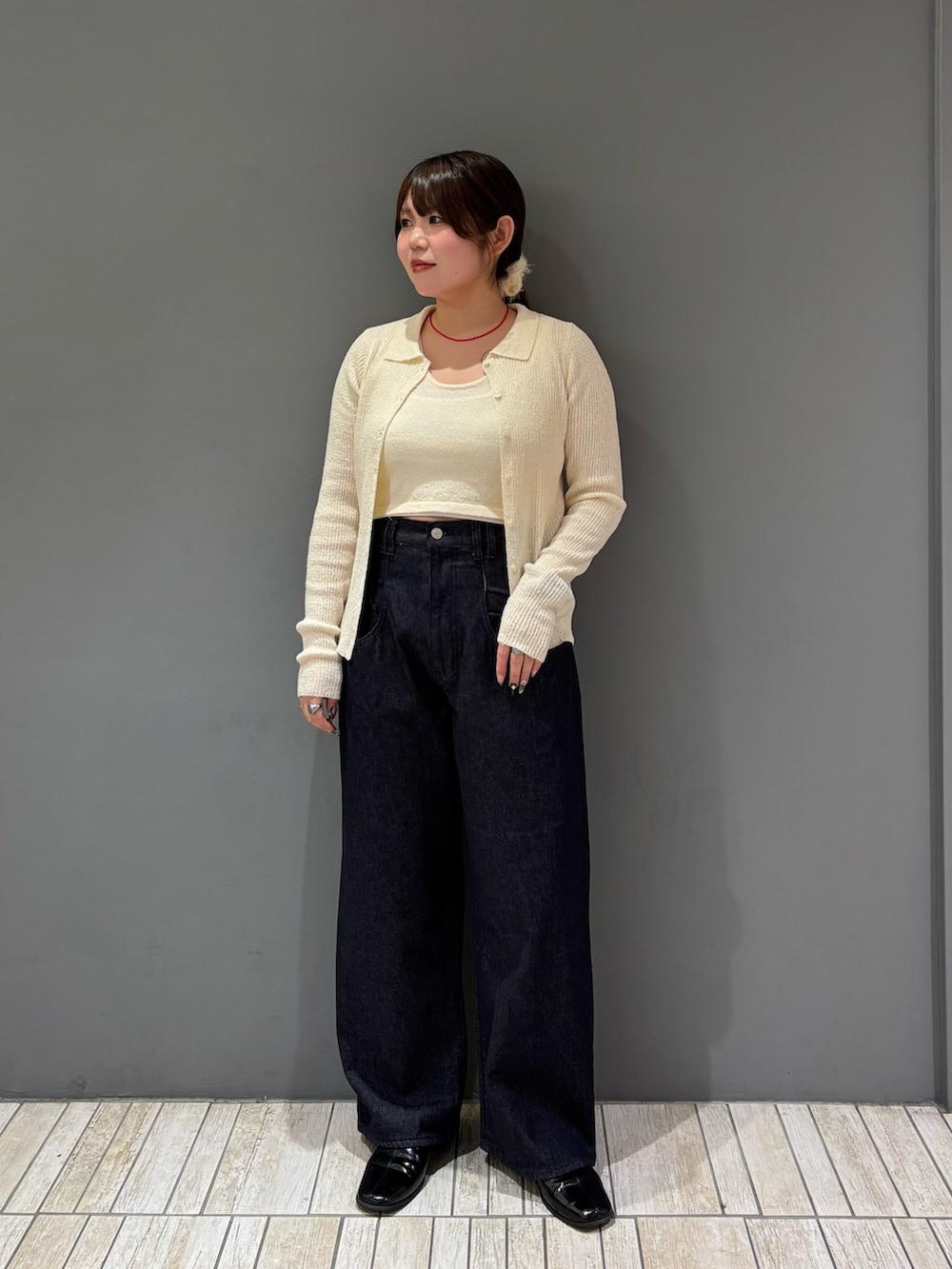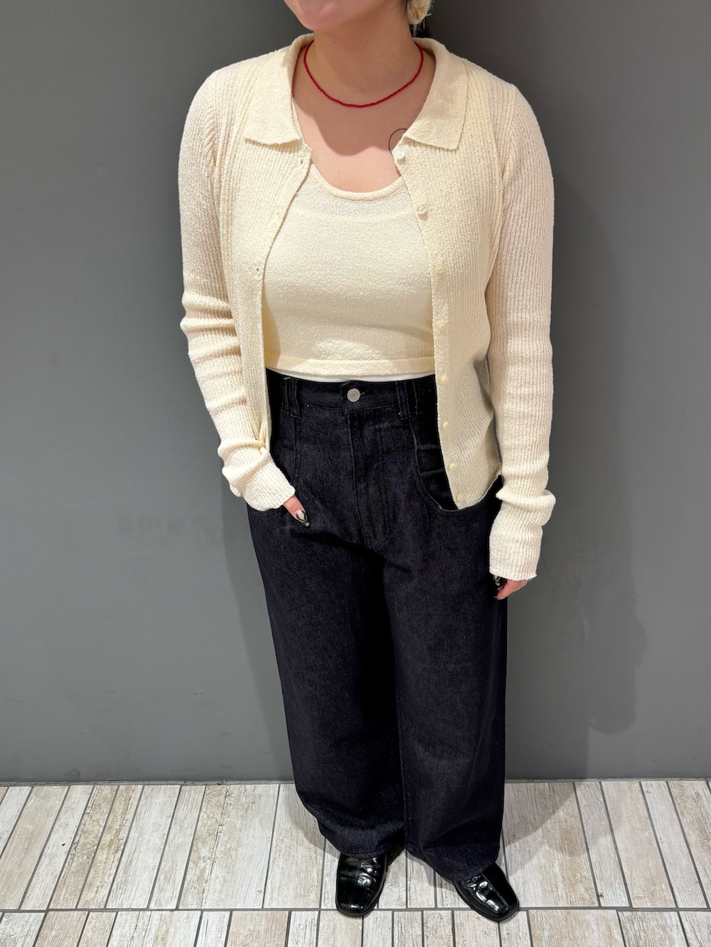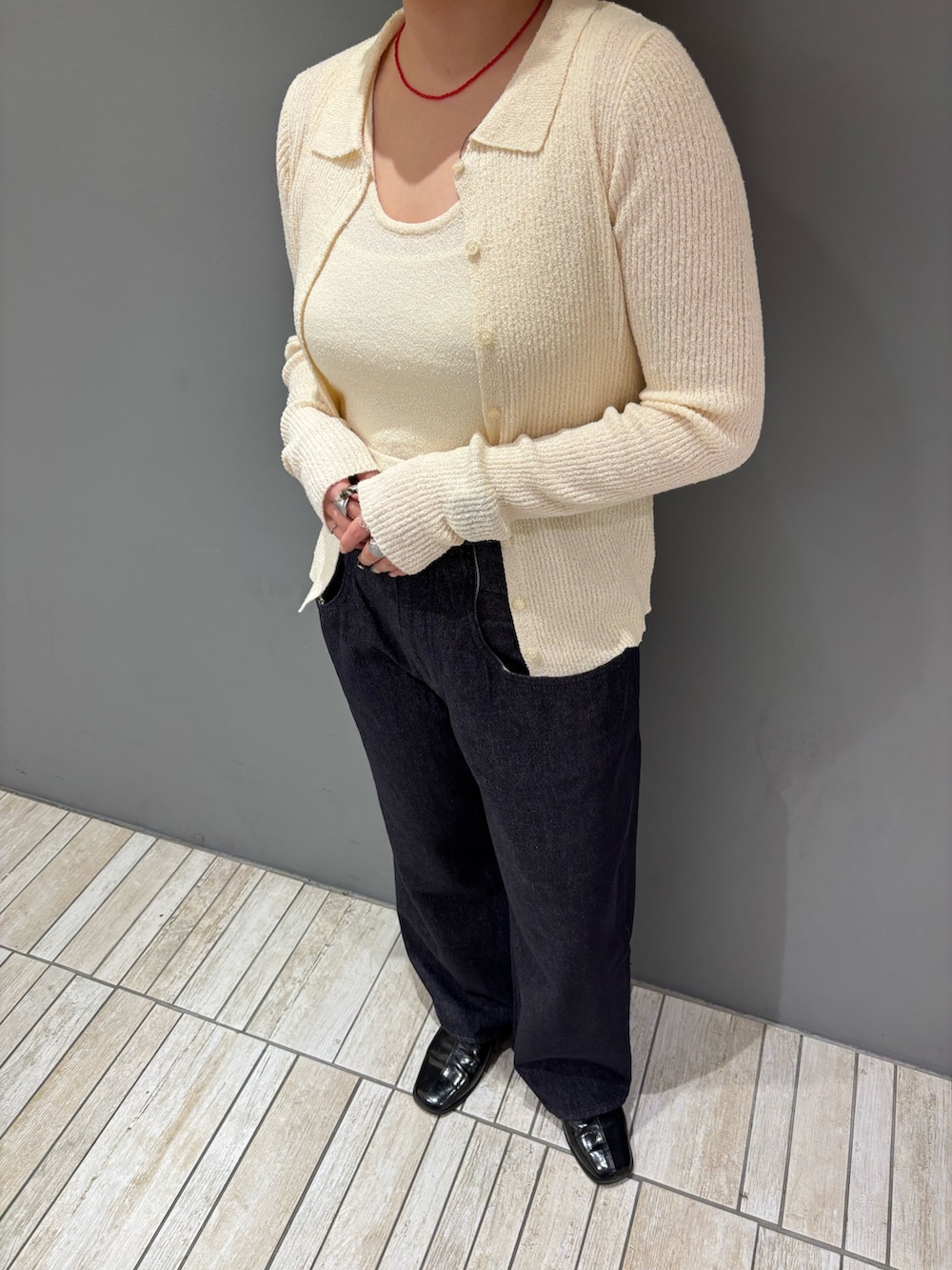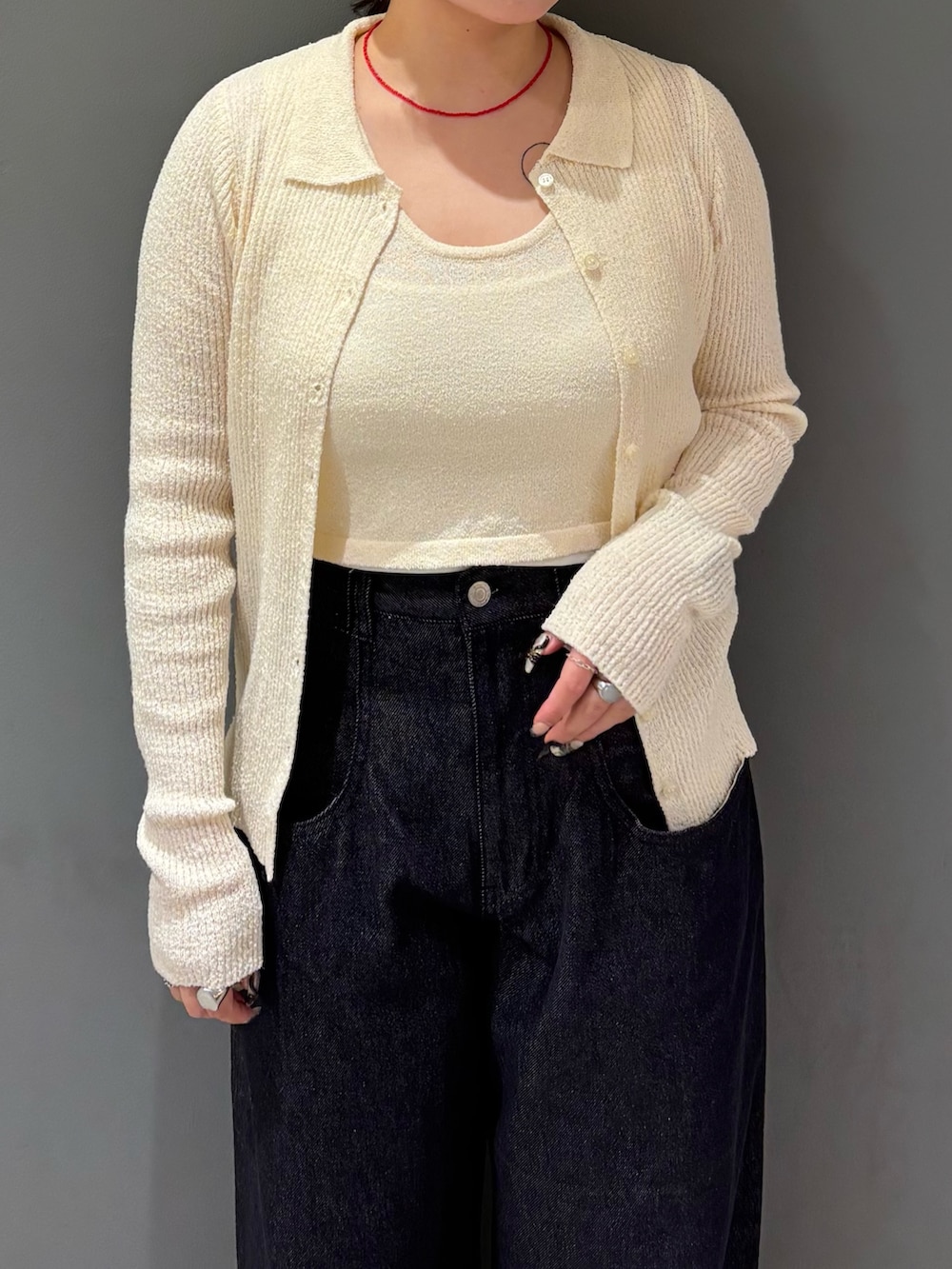 少しピッタリしたアイテムなので、ボリューム感のあるボトムスと合わせると全身のバランス良く着ていただけます🫶🏻