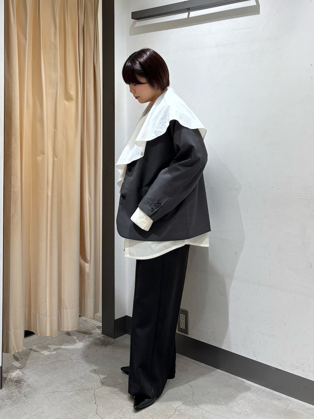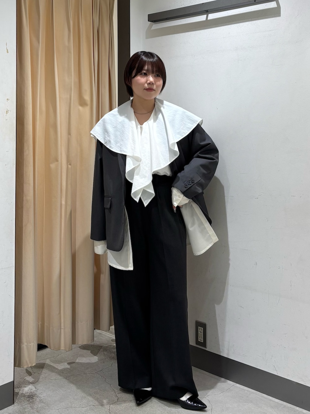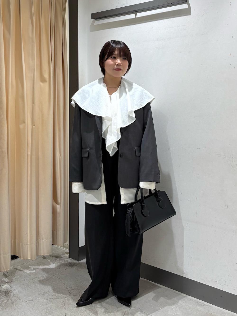 ・ブラウスの襟をジャケットから出して一癖あるオシャレコーデにしてみました.ᐟ.ᐟ.ᐟ
