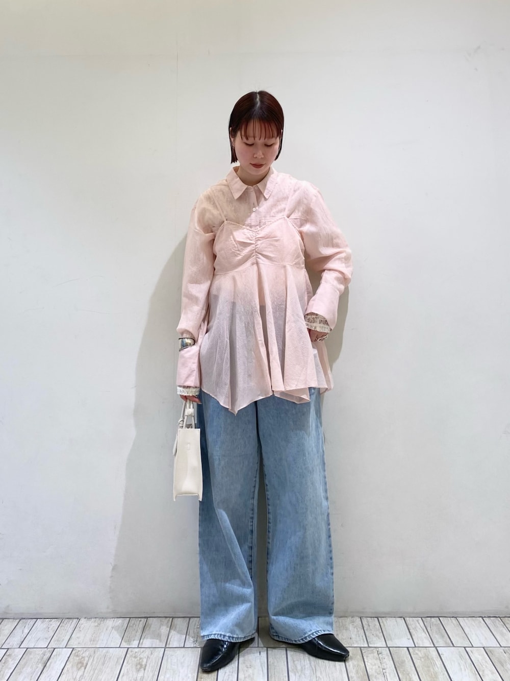 ・ショート丈のアイテムは骨格ストレートさんは上重心が加速するので、そんな時はボトムスにボリューム感のあるアイテム(Aラインや太めのIラインシルエット)持ってくると全身のバランスが良くなります.ᐟ.ᐟ.ᐟ