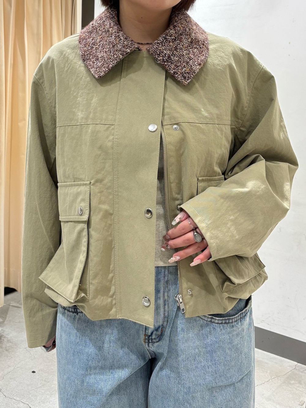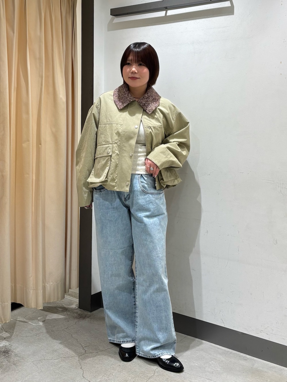 着てみた感じ、サイズ感はジャストサイズより少し大きめな印象ですが、着膨れは問題無く着れました!ボタンを一番上まで閉めても首が詰まらないので骨格ストレートさんにもオススメですɞ̴̶̷ ·̫ ɞ̴̶̷💫