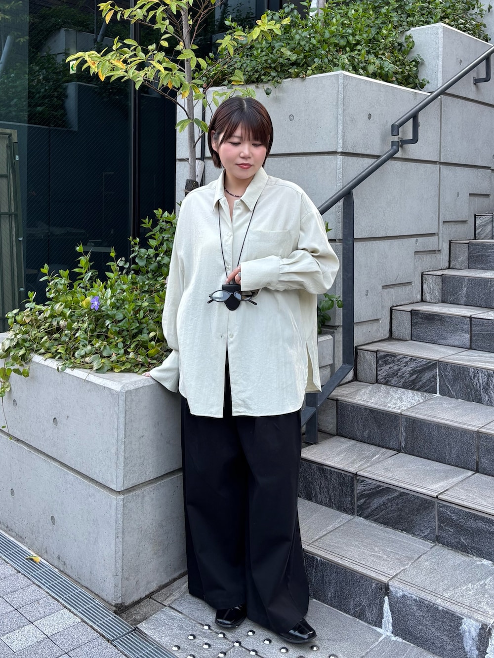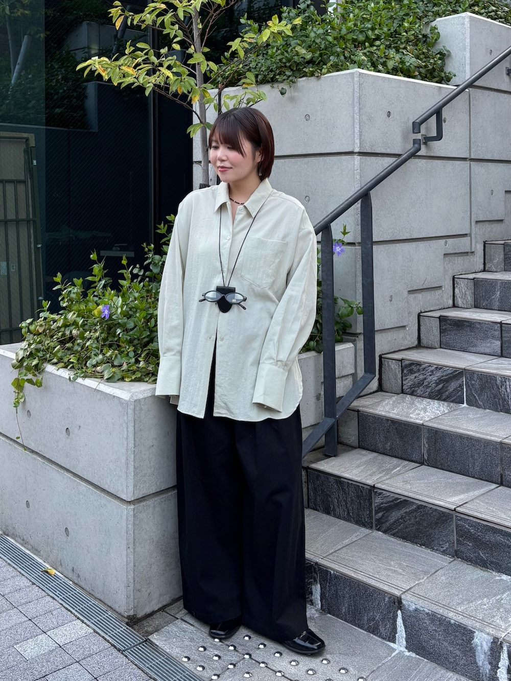 着てみた感じ、オーバーサイズが苦手な骨格ストレートの私でもスッキリ着れました!生地に落ち感があるので上半身の厚みを拾わないところが推しポイント🫶🏻1番上のボタンを開けて着ると更にスッキリ見えますし、こなれ感も出るのでオススメの着方です!!