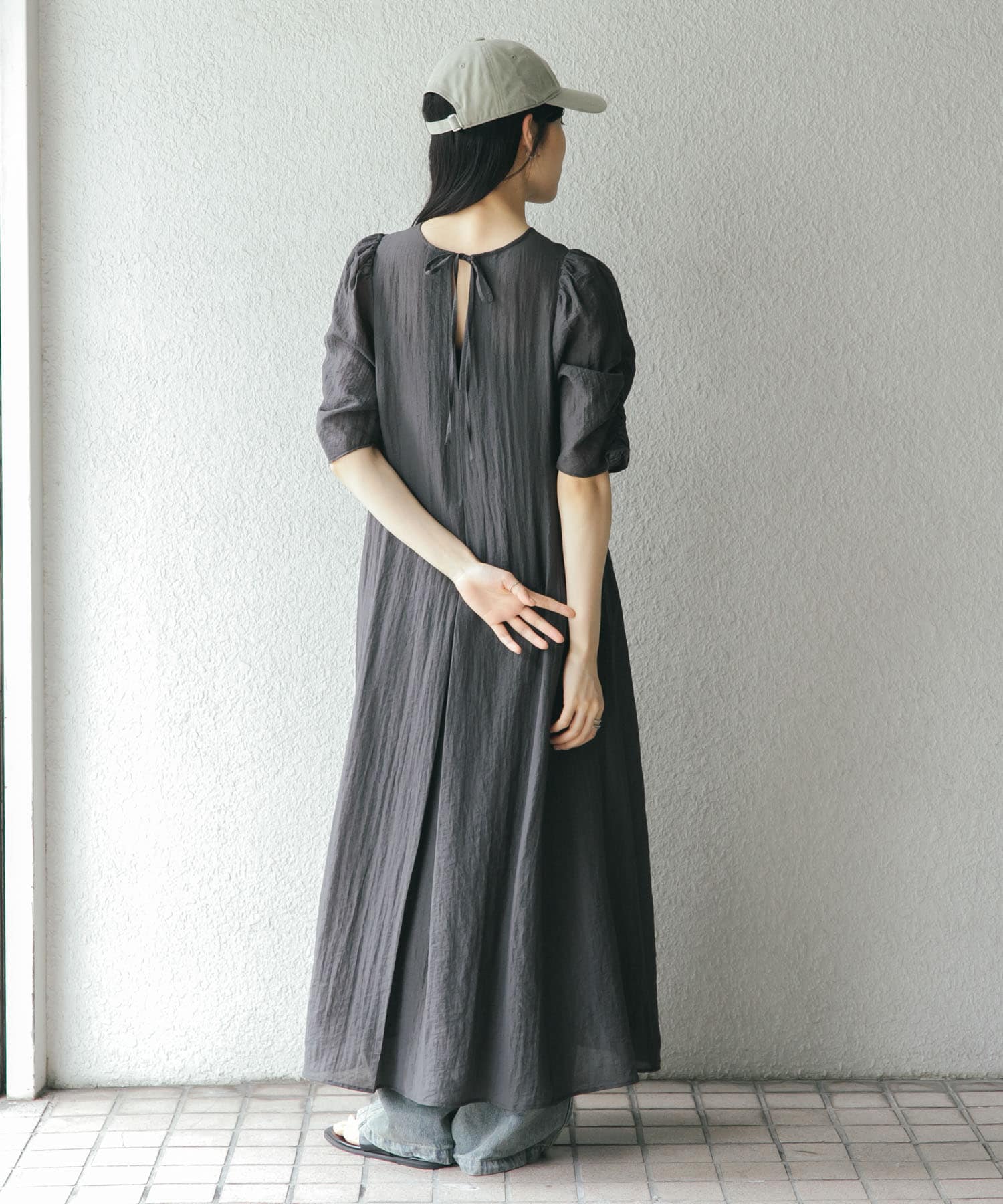 ギャザースリーブフレアワンピース