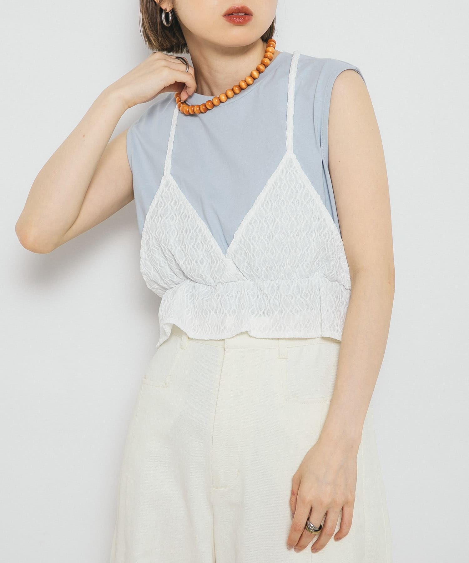 レース素材のビスチェがタンクトップにドッキングされた可愛いアイテムです🕊