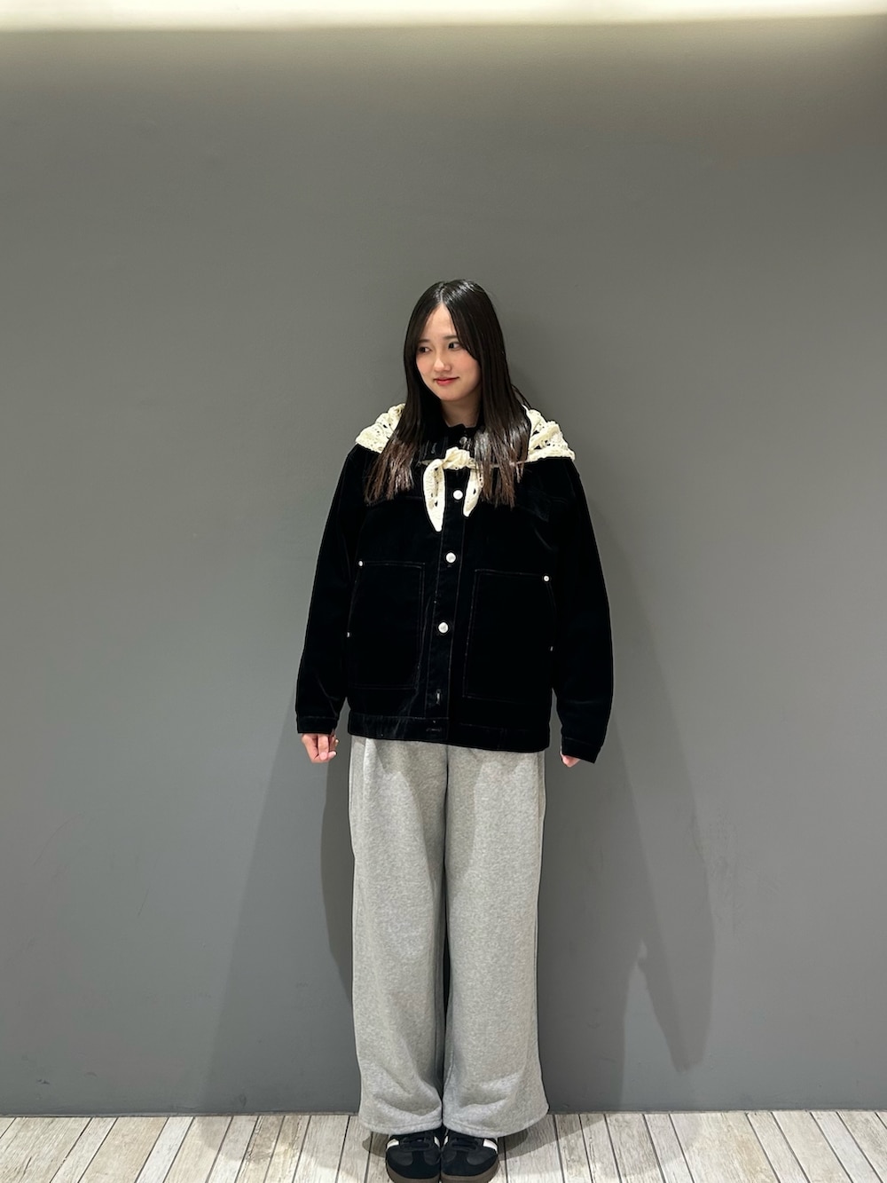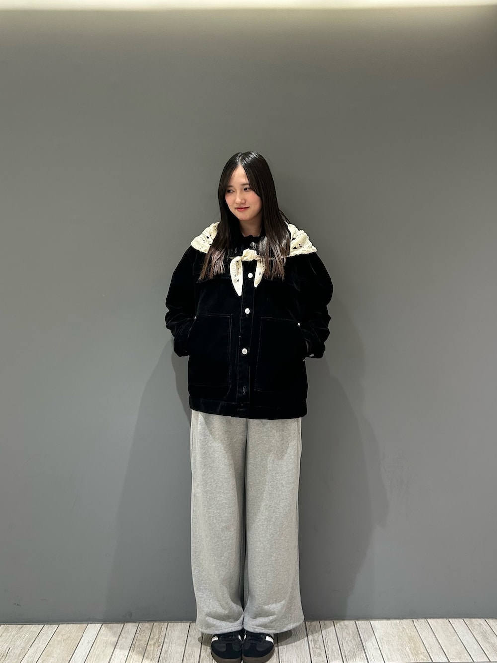黒のゆったりとしたジャケットを主役に、グレーのスウェットパンツを合わせたリラックス感のあるコーディネートです‼️