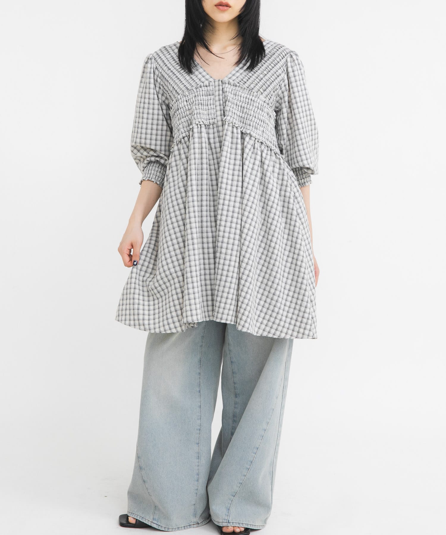 2WAYシャーリングチェックミニワンピース