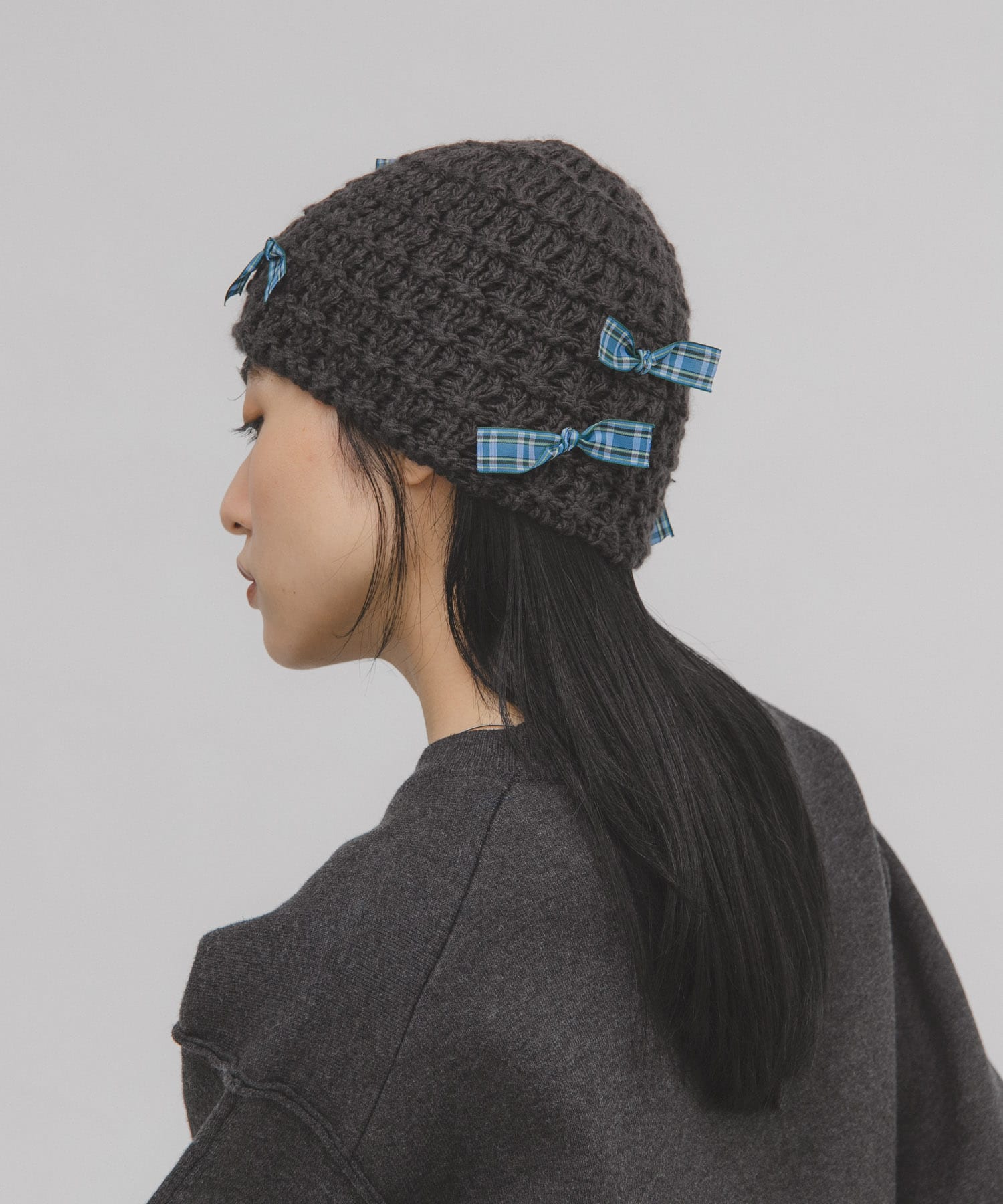 チェックリボンニットビーニー