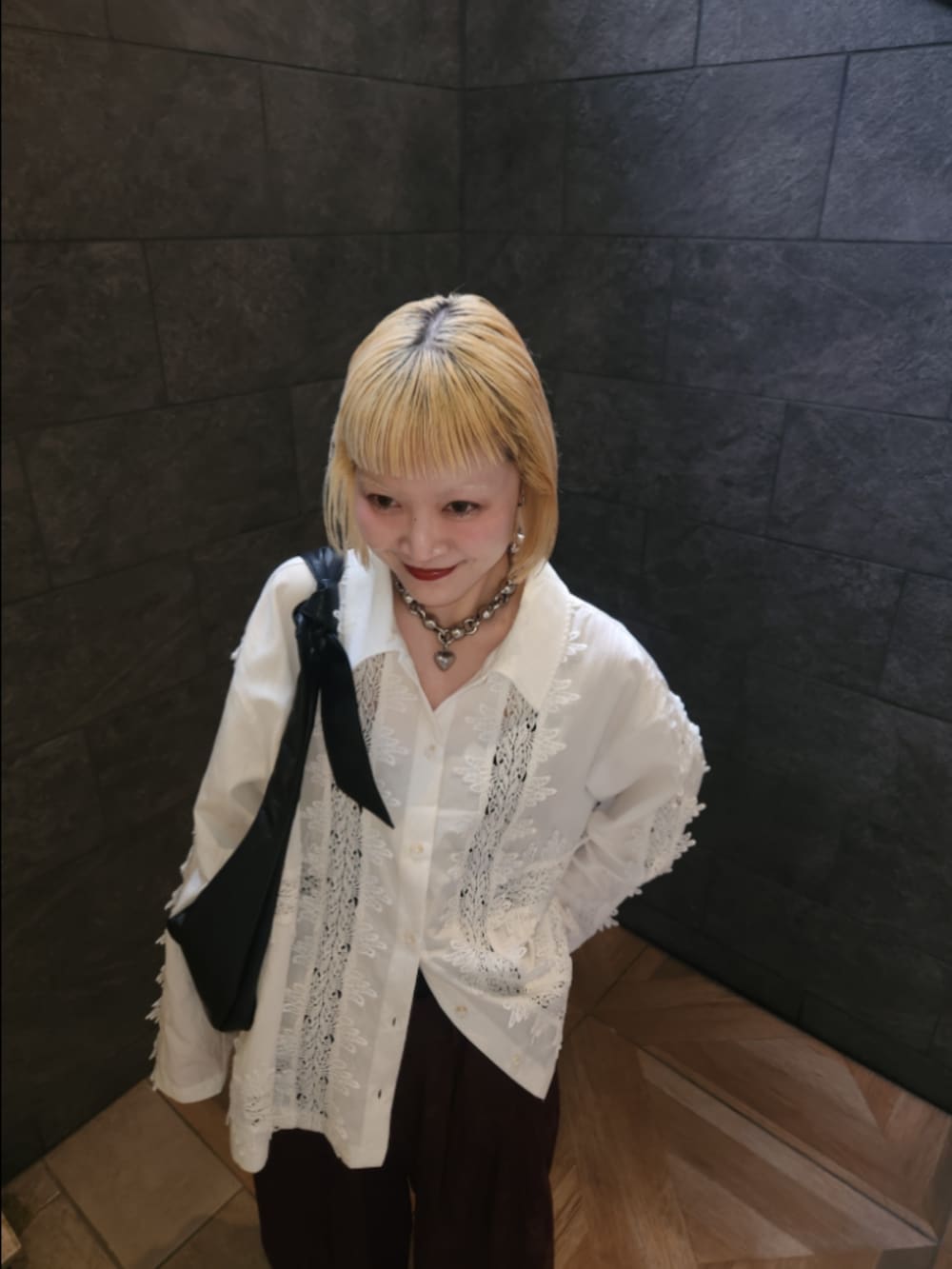 シルエットもほどよくゆとりがある白シャツ🕊️