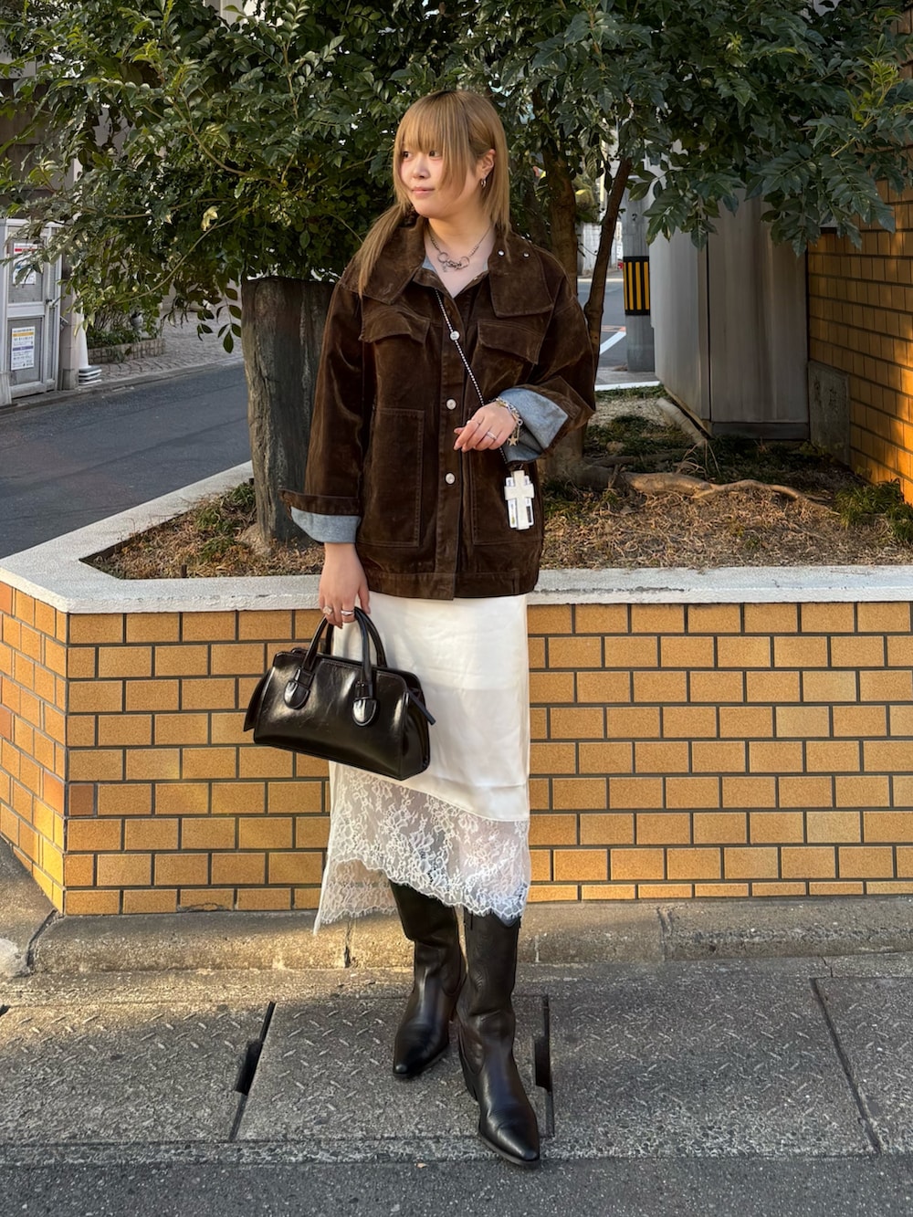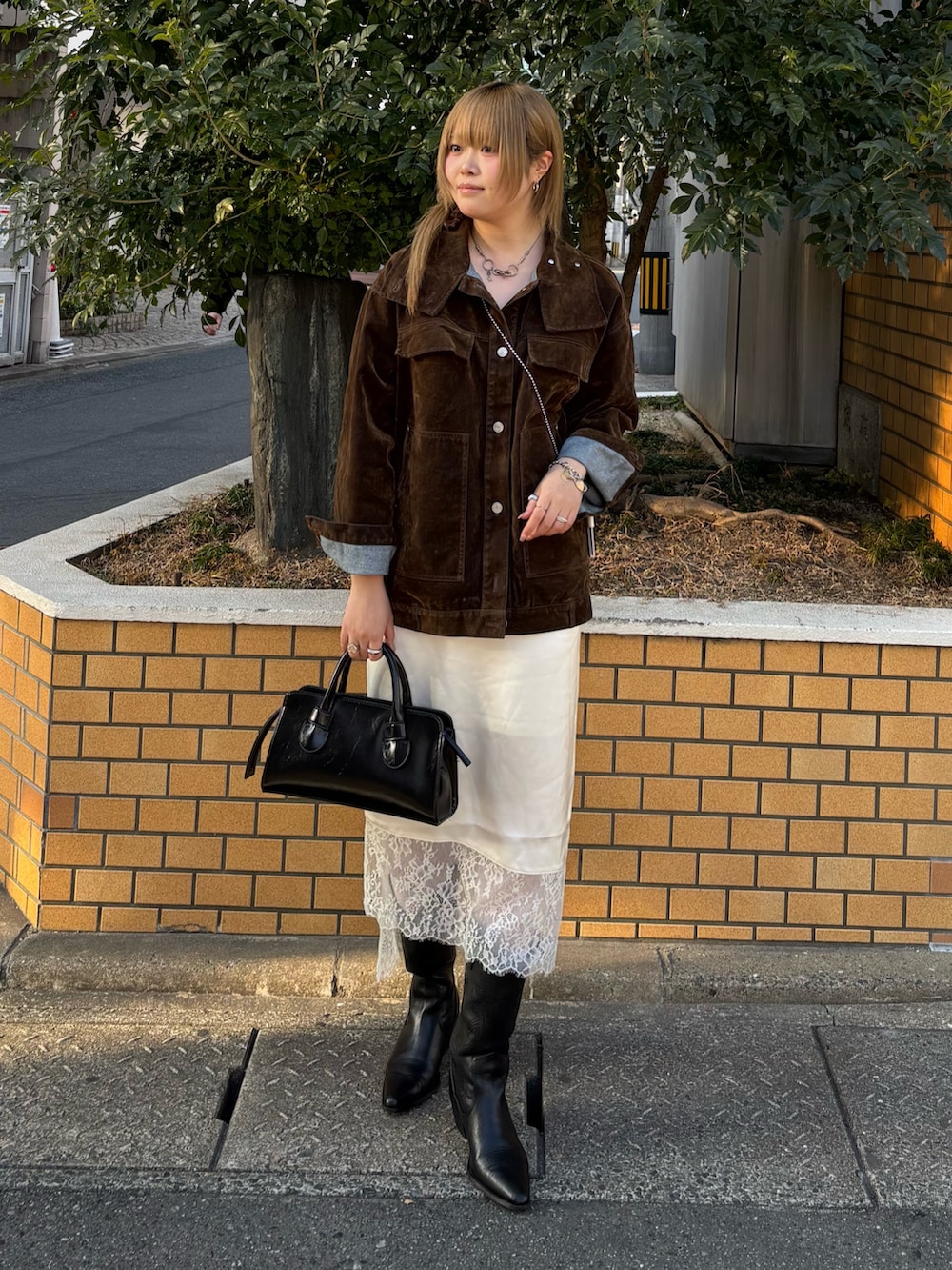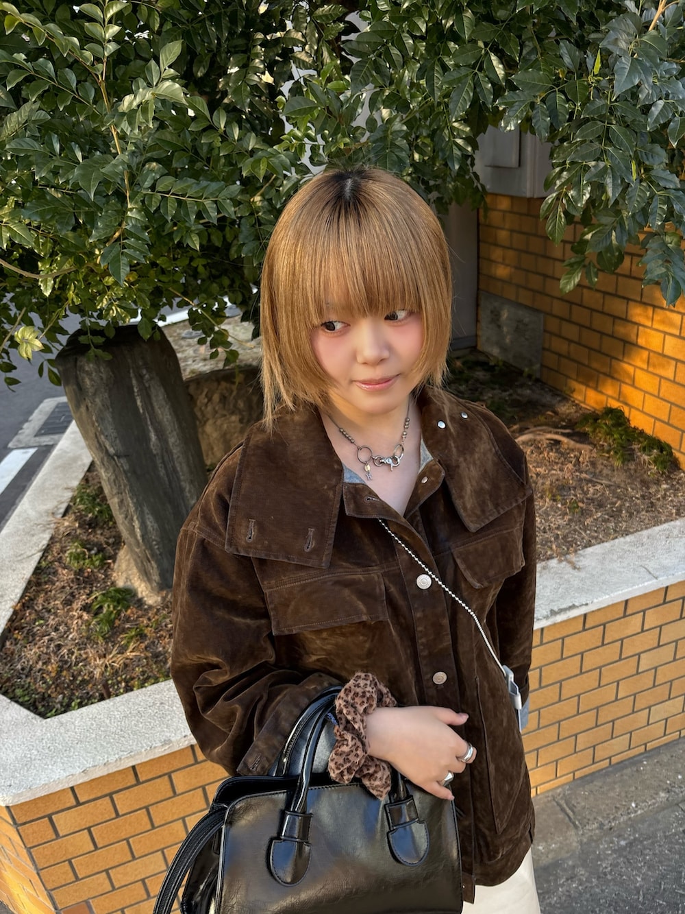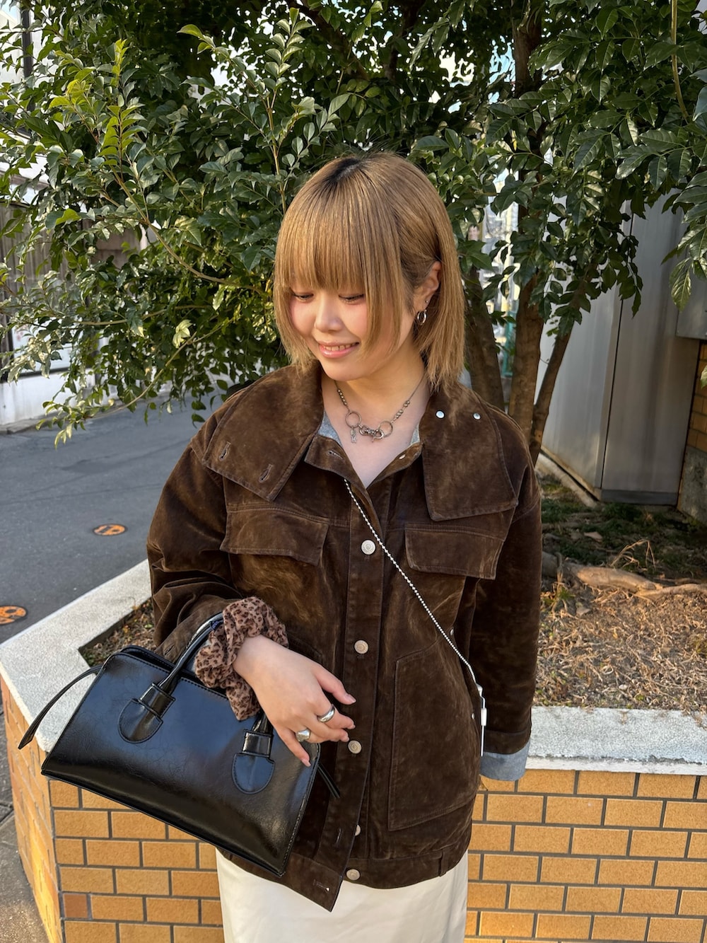 ブラウンは光に当たると基布のデニムの青がチラっとみえてすごくオシャレです🍰