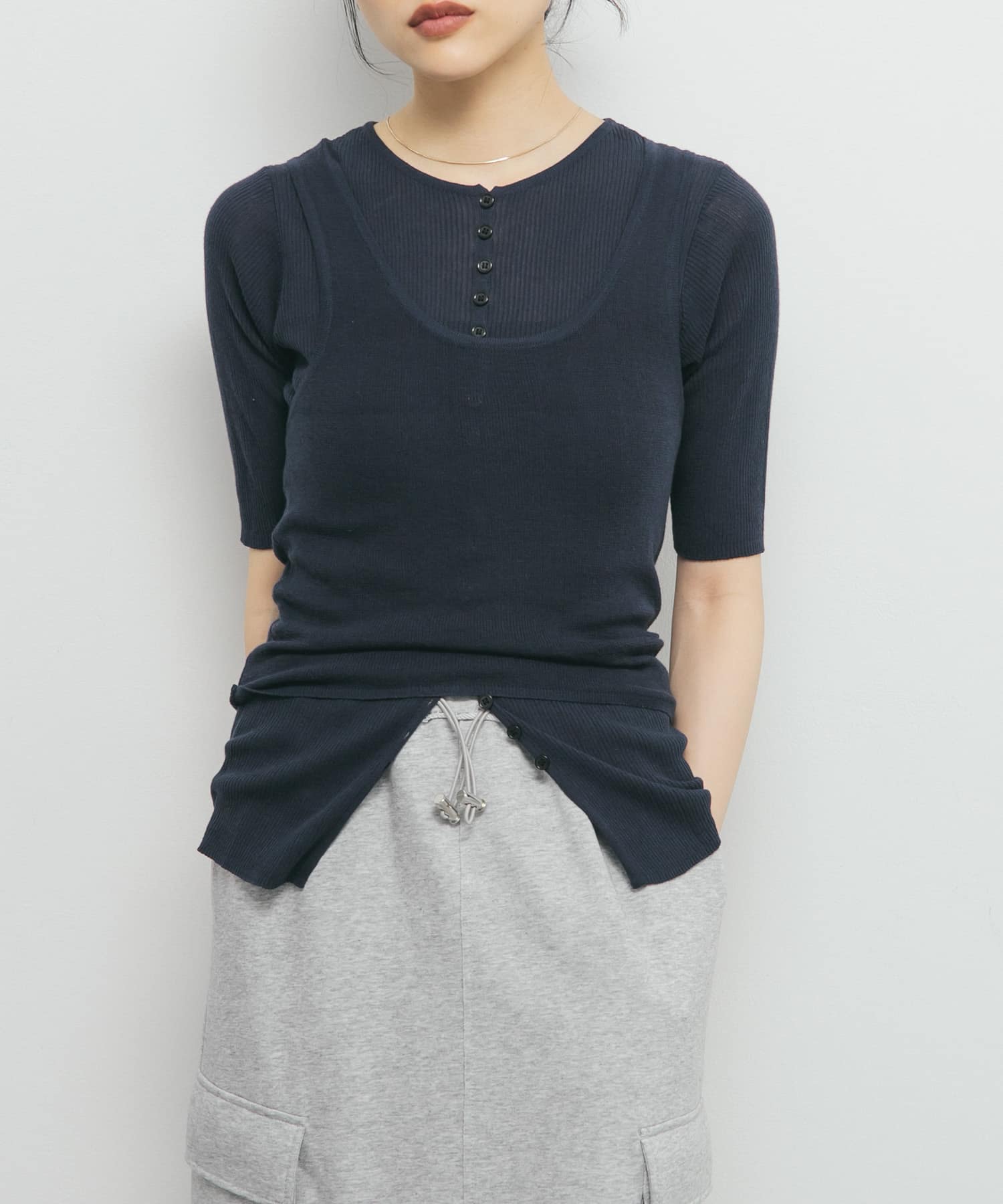 フロントボタンレイヤードニット