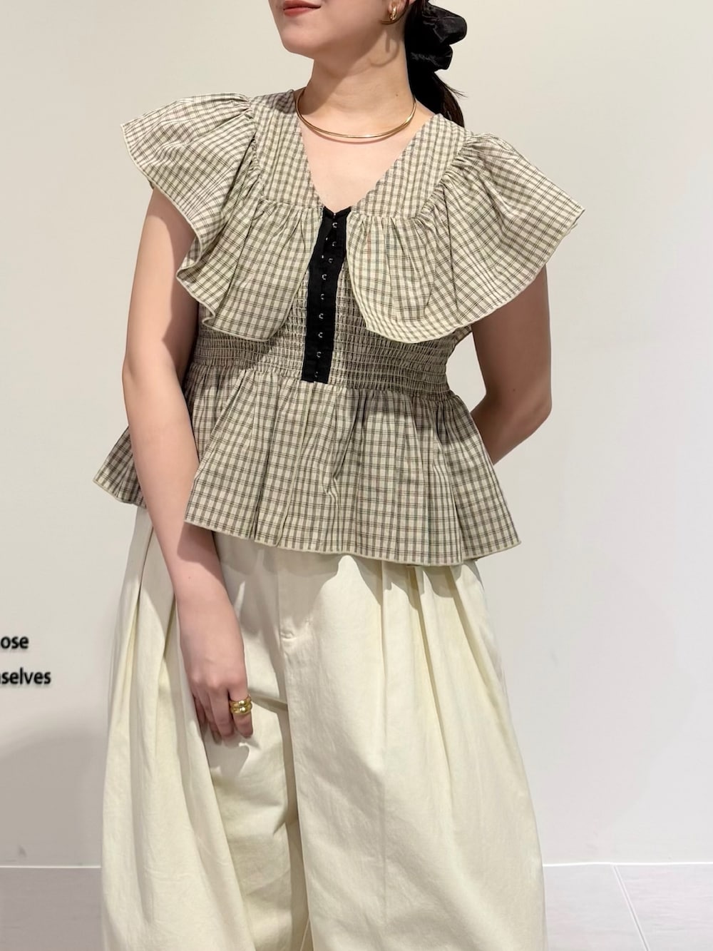 フロントホックチェックフリルブラウス