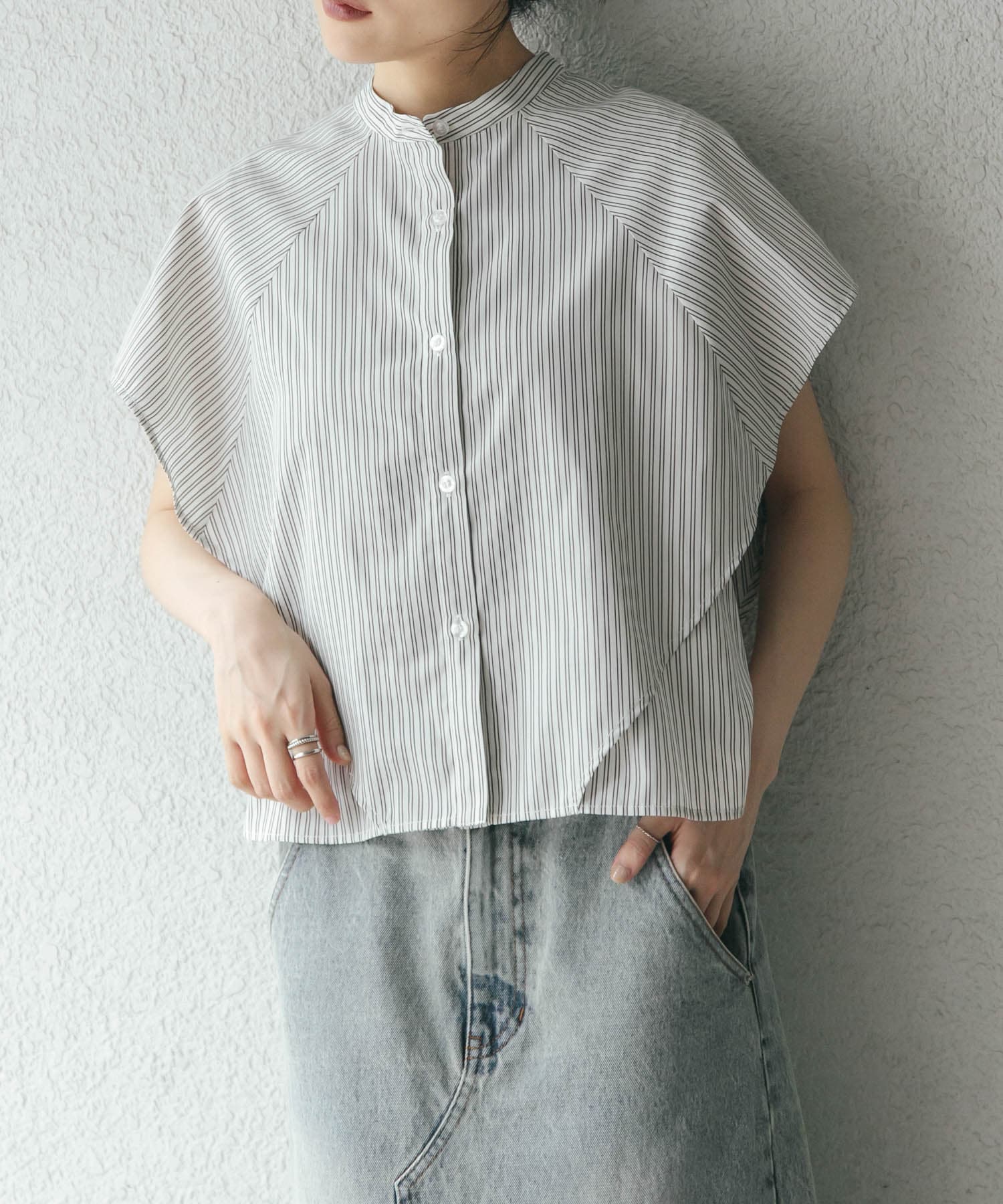 シャツは二の腕を隠してくれノースリーブタイプで、スラックス等を合わせたらオフィススタイルにも使っていただけます!