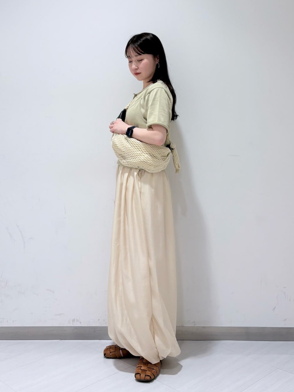 パンツは身長152センチでウエストを一回折り返して着用しています!折り返さなくともペタンコで履いていただけますが、スッキリ見せたい方は折るのもオススメです!🔥