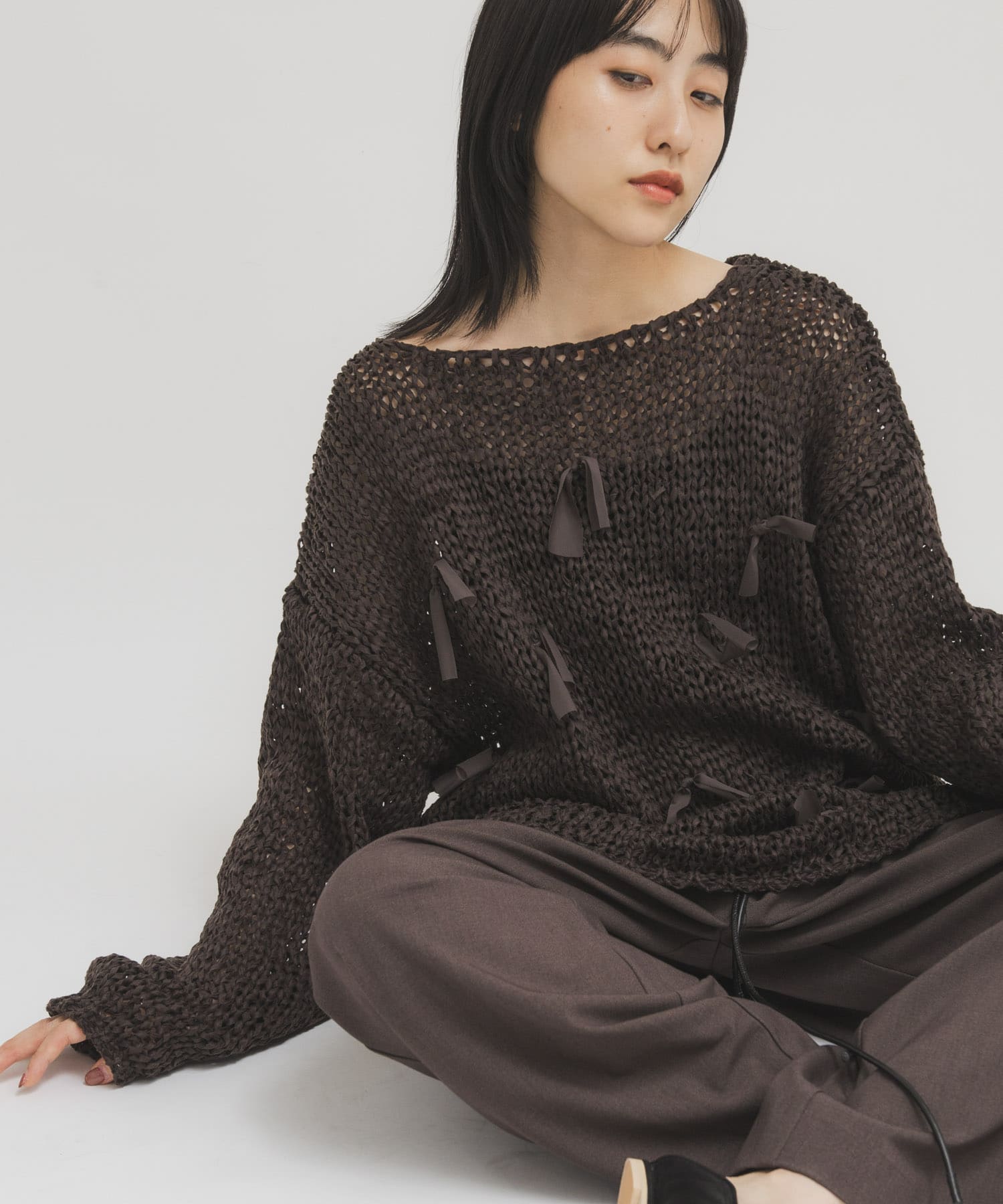 メッシュのような編み地に大きなリボンがかわいいですよね💕