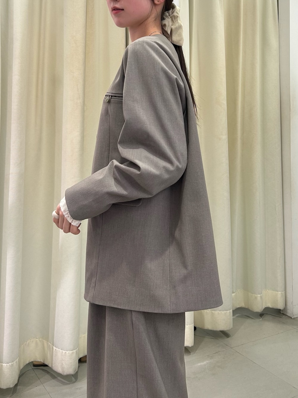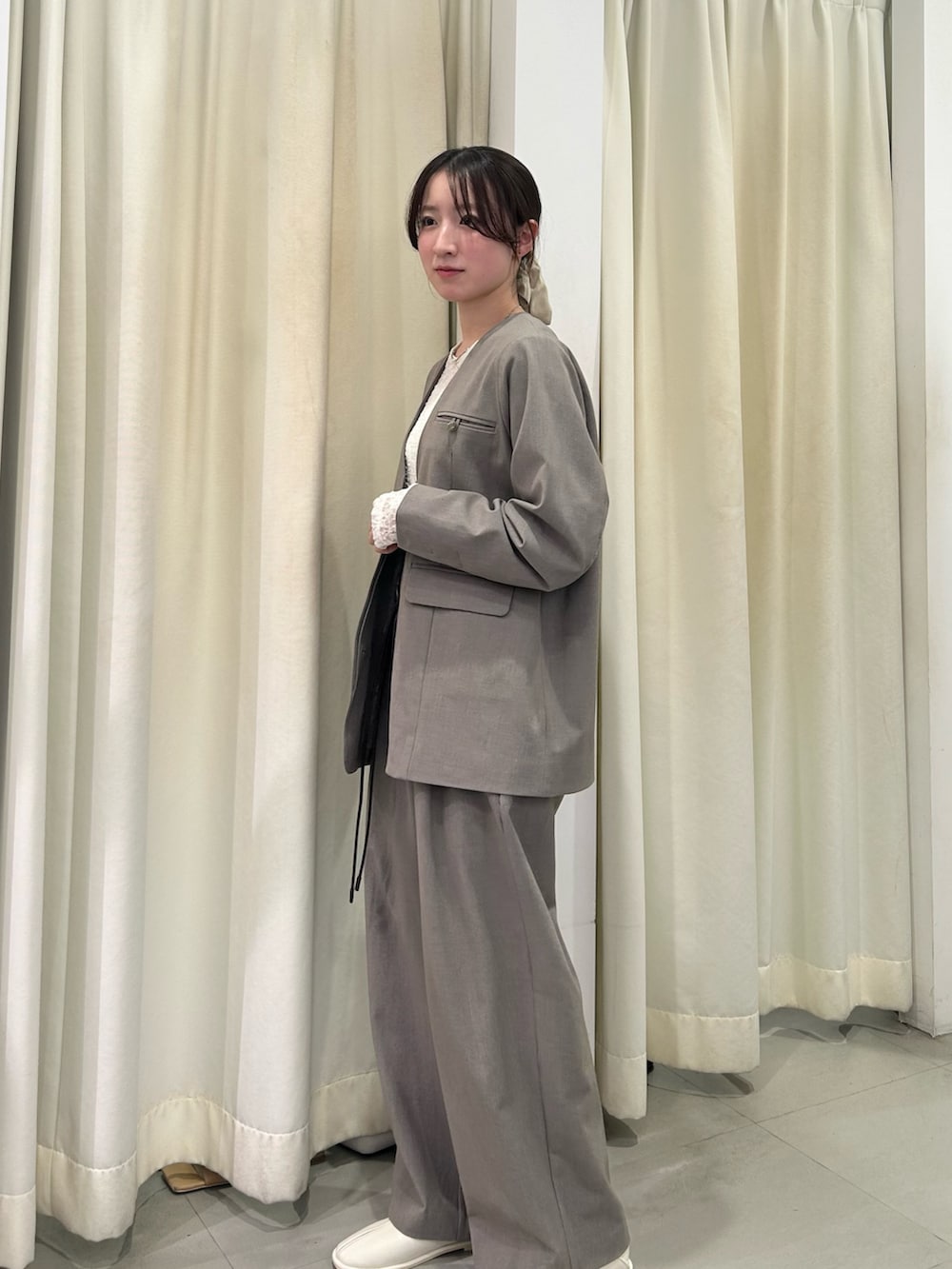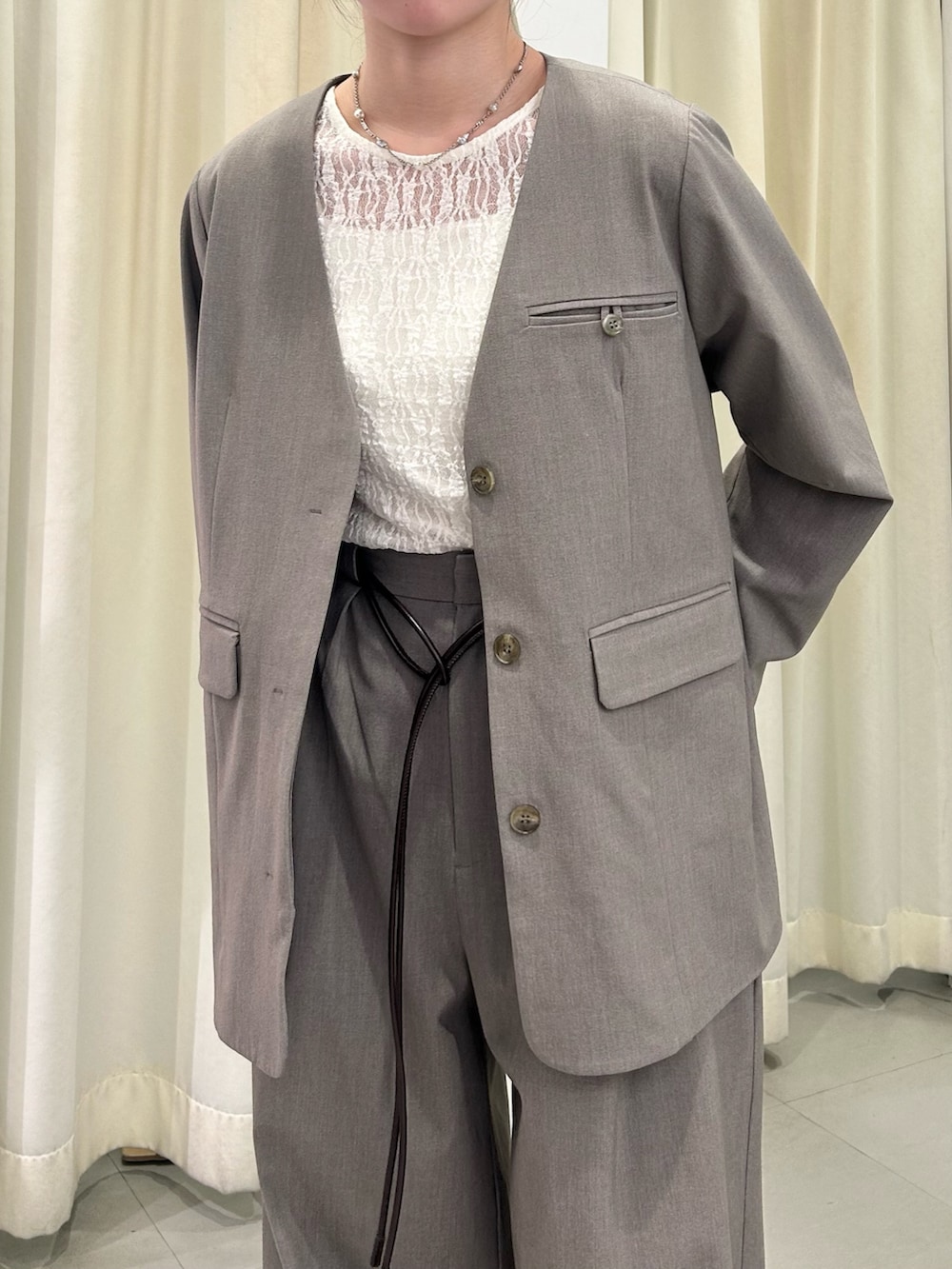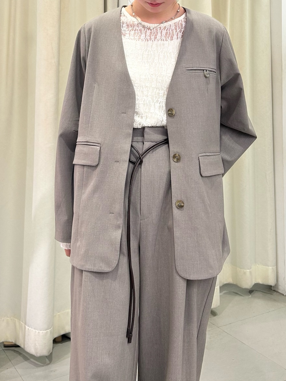 インナーはレーストップスを合わせて、かっちりしすぎない柔らかさをプラスしました🤍