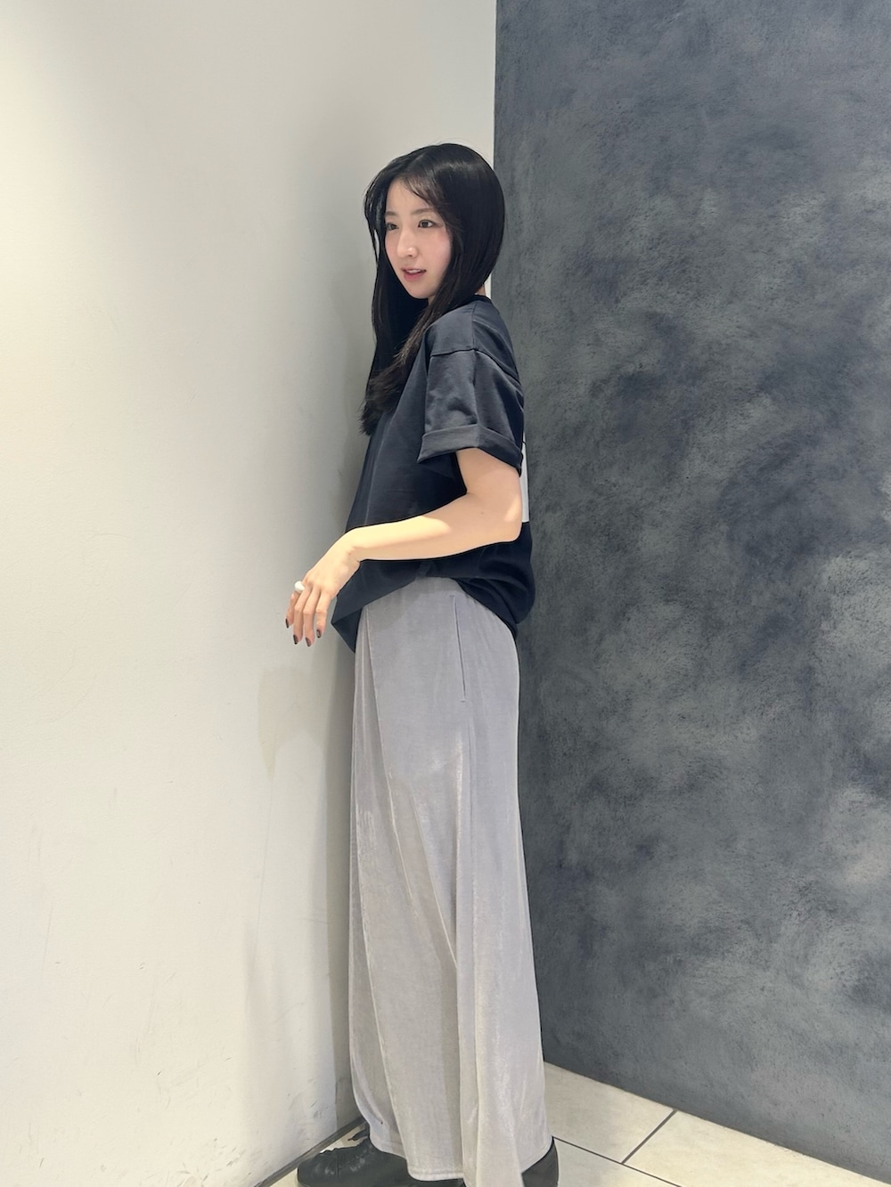 ラフなTシャツスタイルも、素材合わせで大人っぽく仕上がります🙂↕️