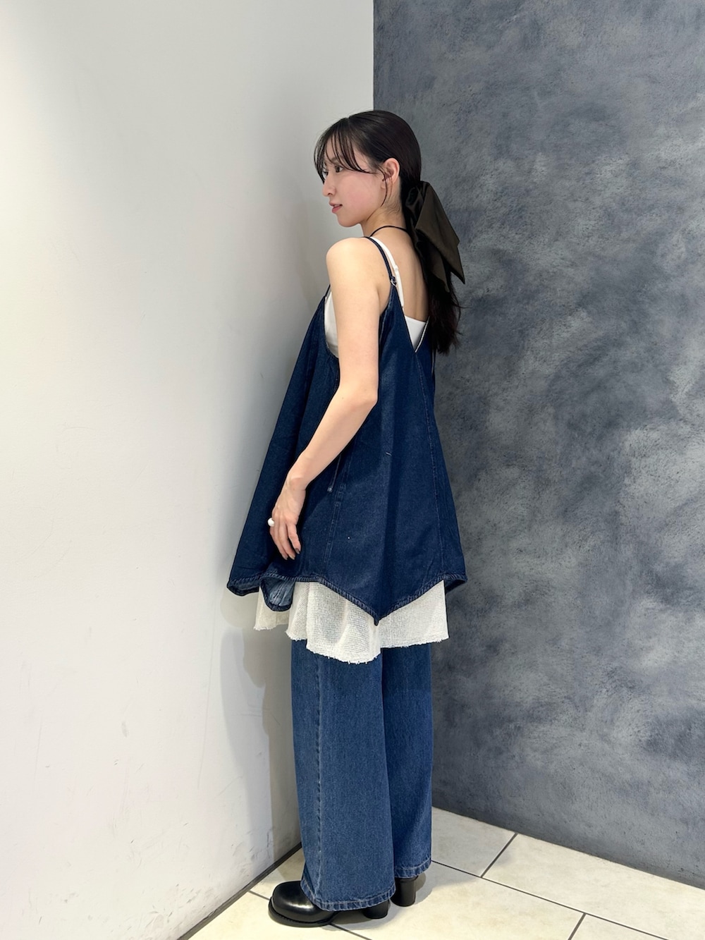 異素材の重なりが楽しめる、抜け感のあるデニムコーデです⏭️