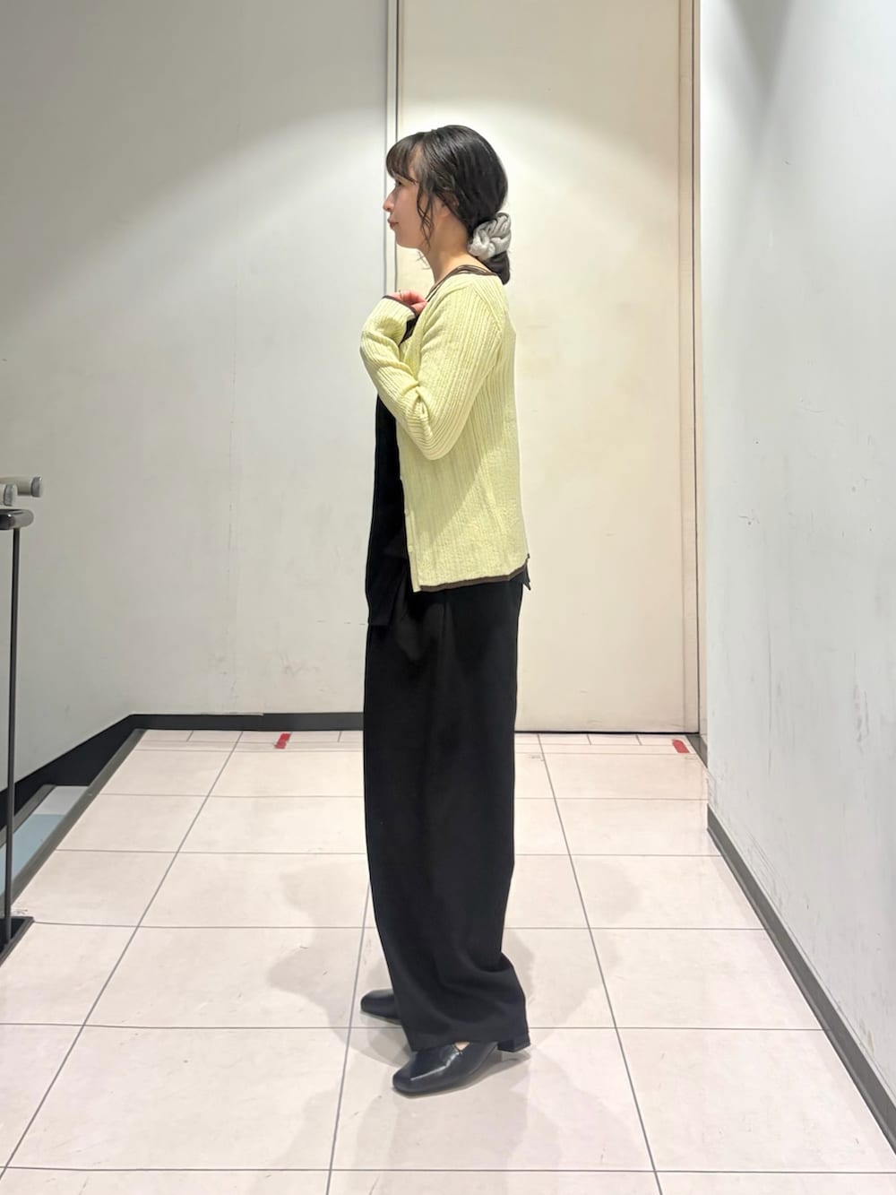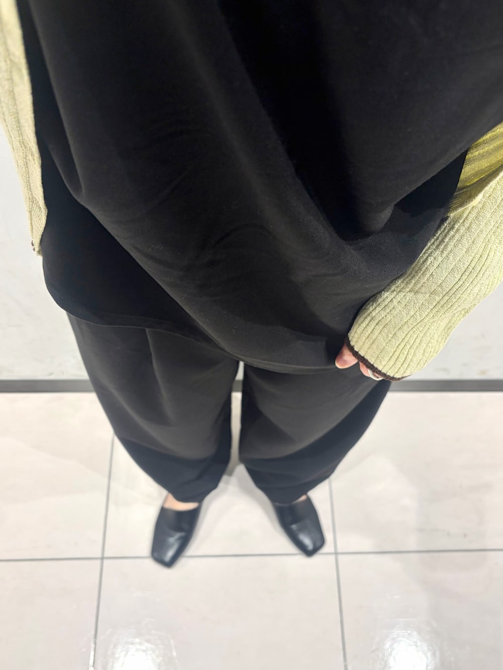 パンツは154cmの私でもフラットシューズで履けるくらいで、股上が深いのでひと折りすればわたしより小柄な方にも履きやすいです☺︎