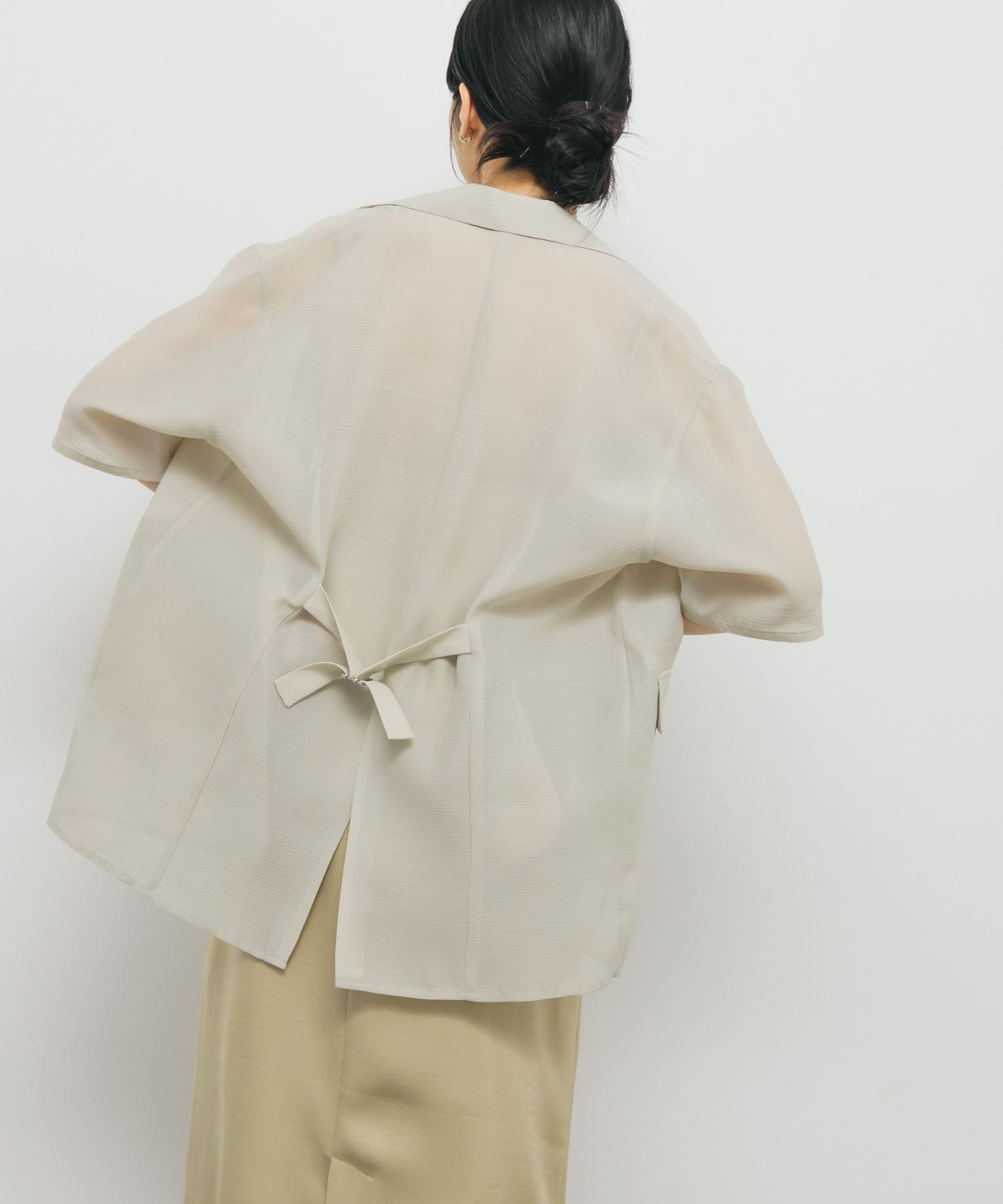 ハーフスリーブシアージャケットは後ろにベルトがついているのでスッキリとしたシルエットに変更も可能です✨