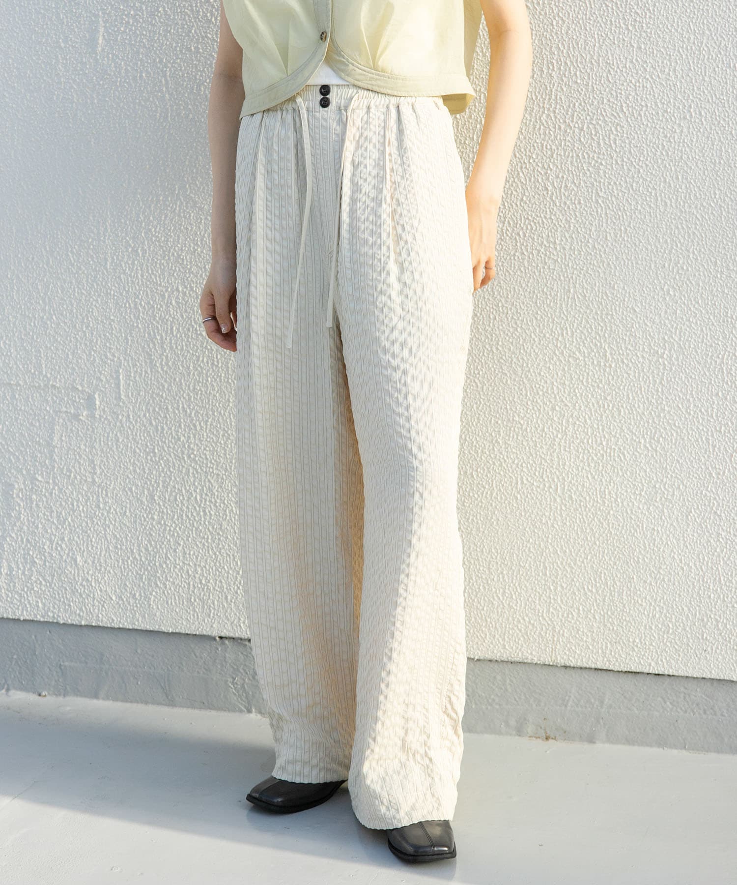 生地がさらっとしていて夏に重宝すること間違いないストライプイージーパンツと合わせました☺️