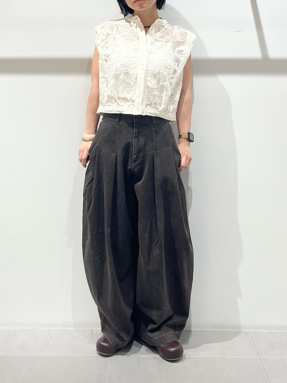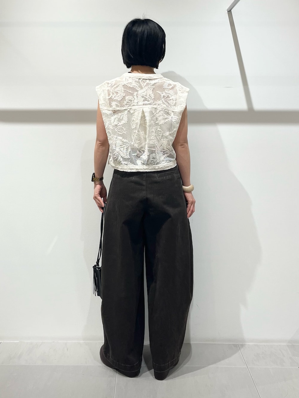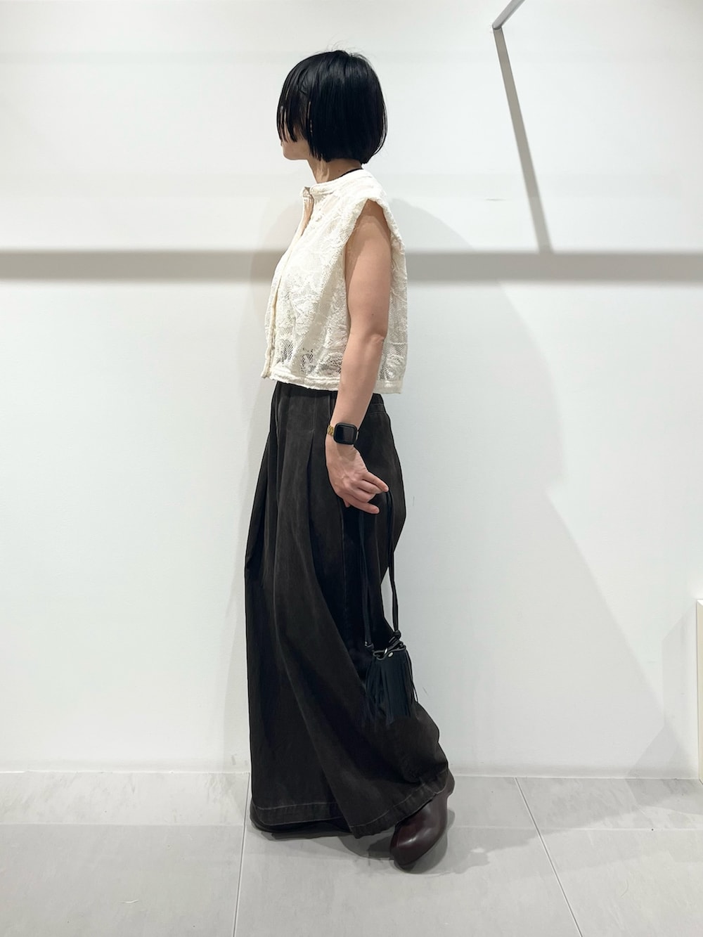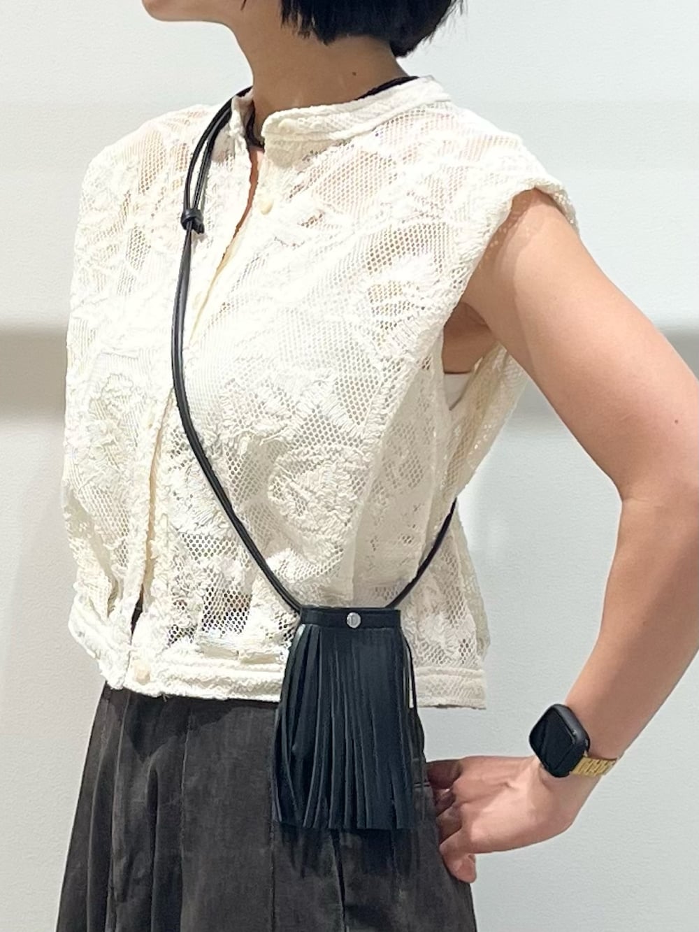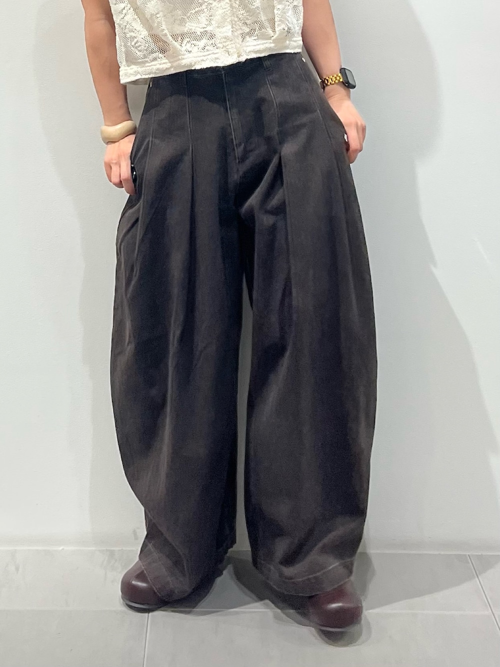 くすみブラウンがいいニュアンスを出してくれます!丸みのある形が、コンパクトなトップスによく合います。