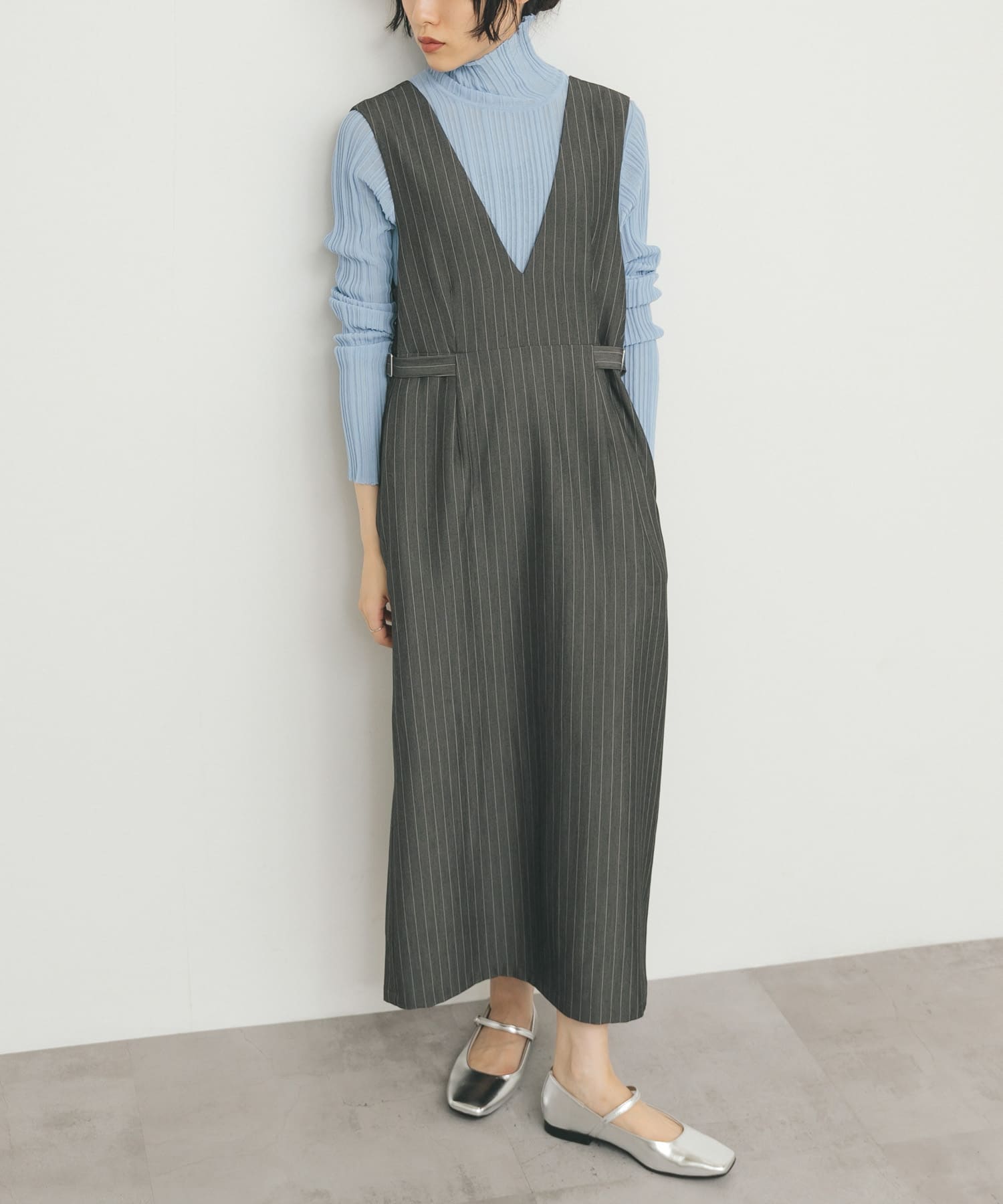 きれいめにも着れるジャンパースカートはストライプが春らしく、前後抜かりなくデザインが可愛いです✨