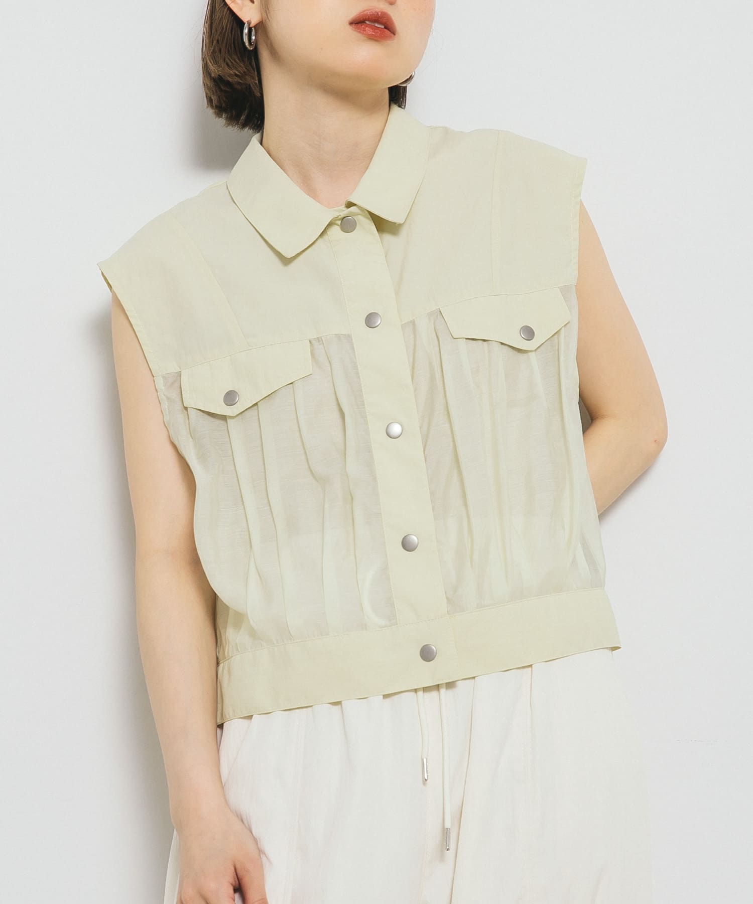 同系色のベストと合わせて淡色カジュアルコーデにしました。