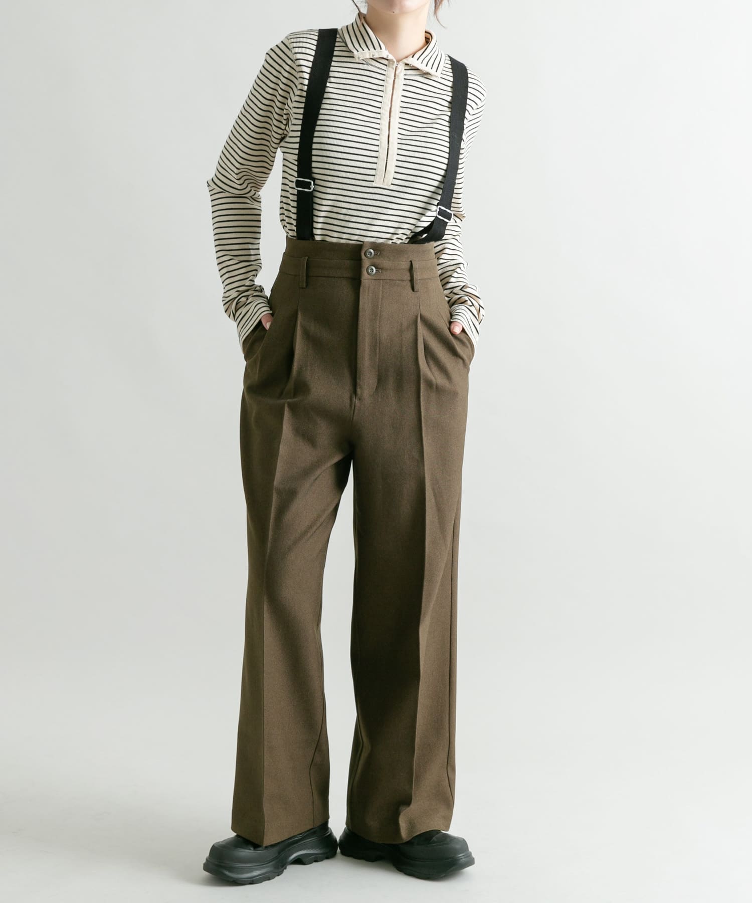 サスペンダーは取り外し可能なので、シンプルにパンツ単体で着回しても◎