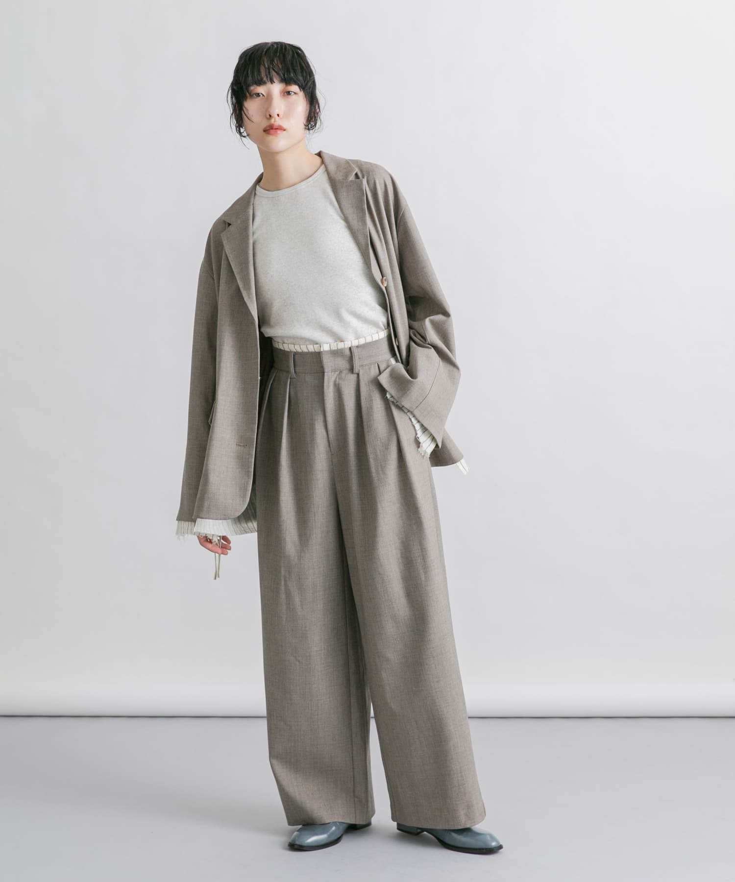 ジャケットとのセットアップで着てもお洒落ですが、単体で着ても色味も春らしくスッキリ見えます✨