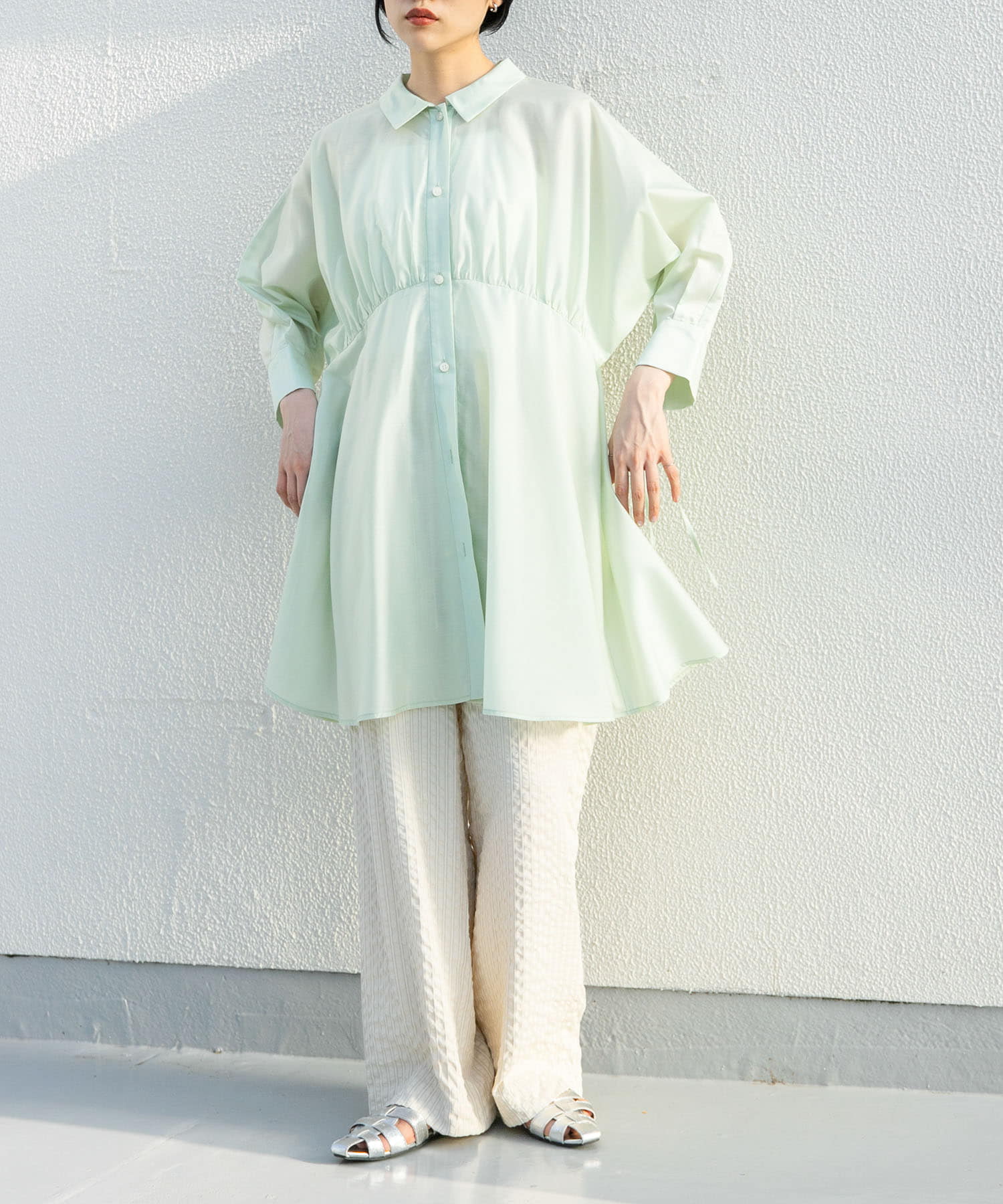 ミニワンピースは羽織としても使いやすく、ボタン閉めて着るのとまた雰囲気がガラッと変わります!✨️