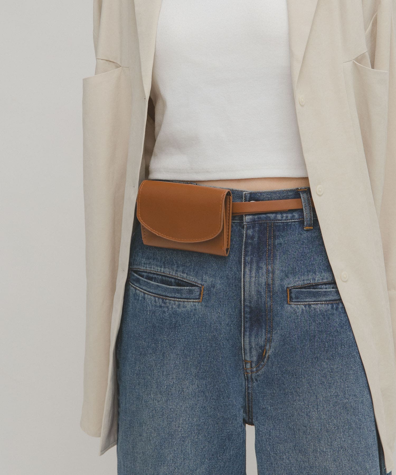 ゆったりとしたシルエットなのでポーチ付きベルトをプラスしてウエストをマーク