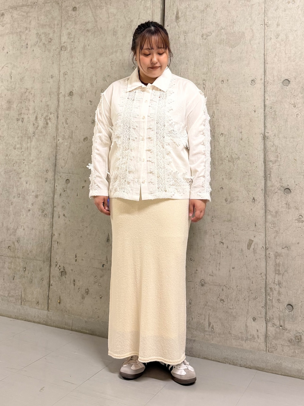 ストライプシャツはBIGカラーが可愛く、アウターやニットなどに重ねて襟を出したりするのもおすすめです!