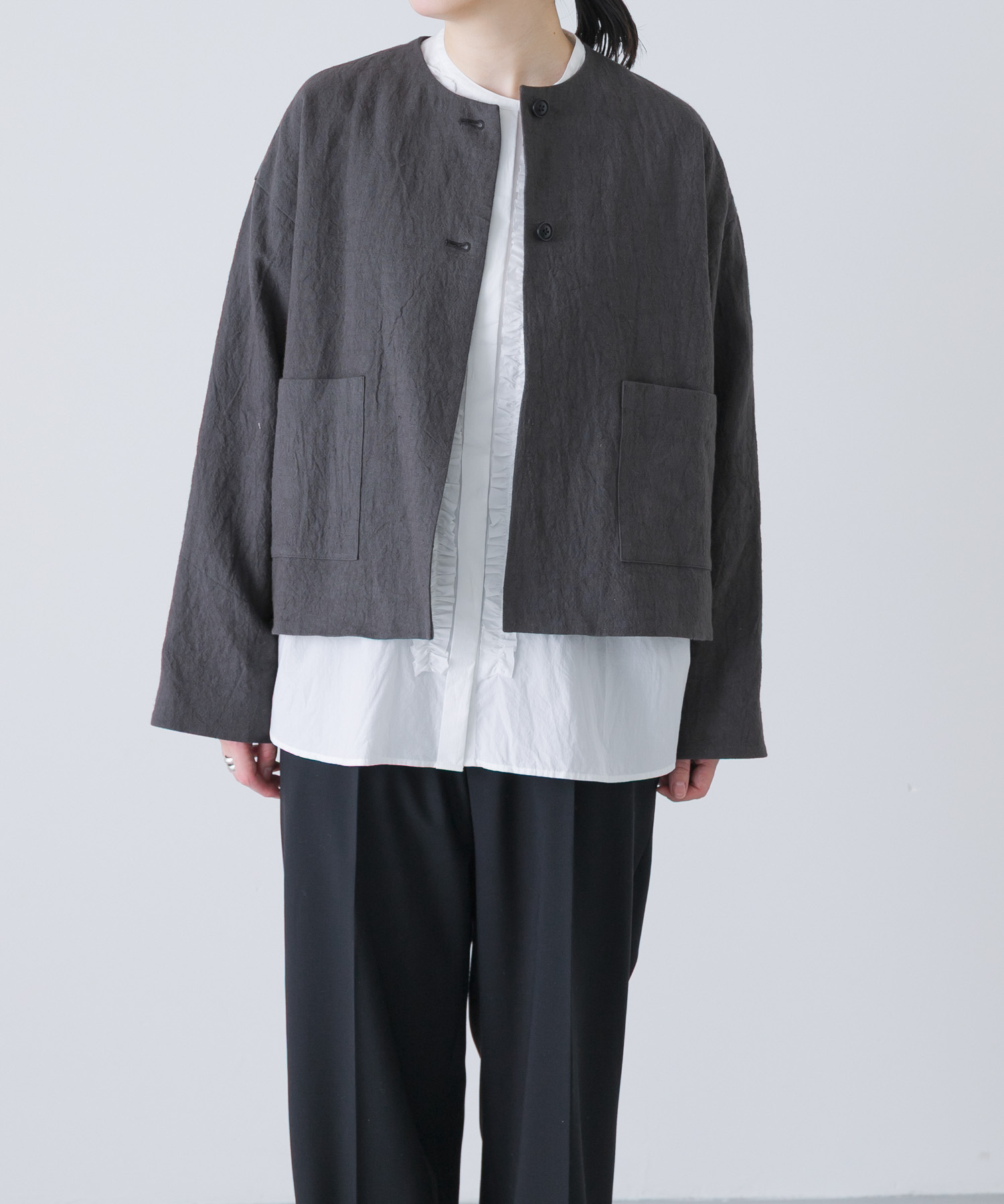 リネンラミーノーカラージャケット