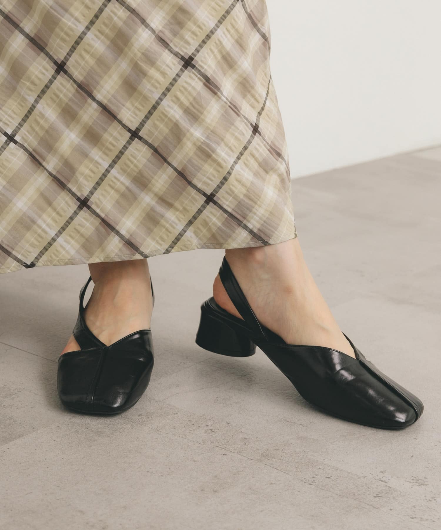 アシンメトリーストラップパンプス