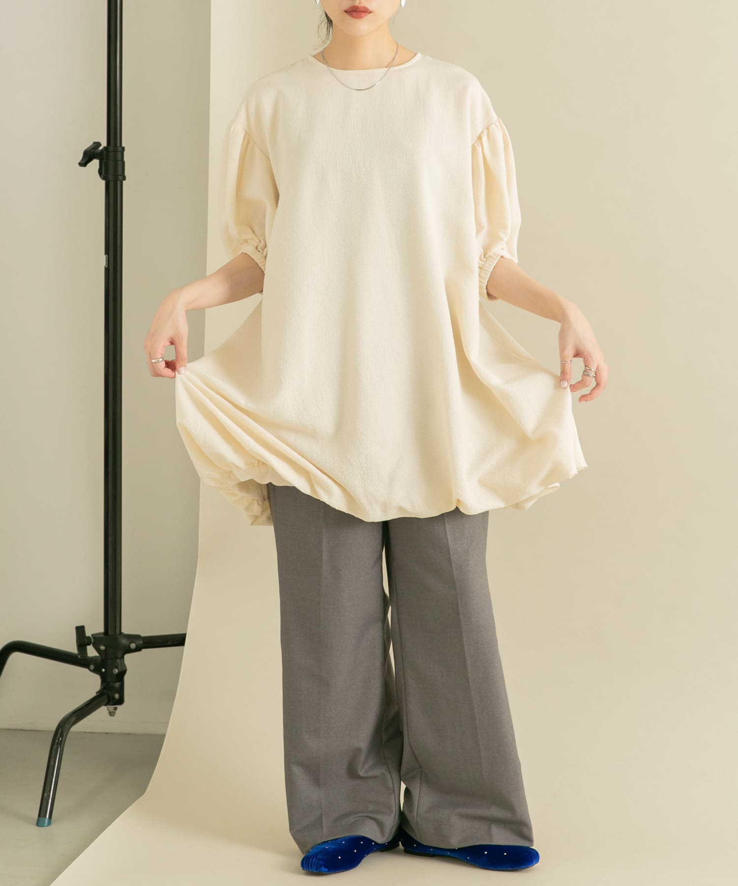 ワンピースはバルーンシルエットが可愛いく、女性らしいコーデが出来て◎