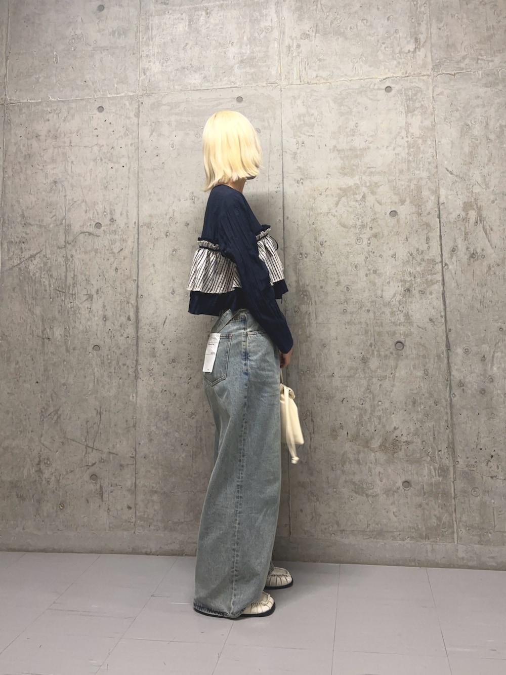 トップスはフリルがあり、甘めなのでボトムスはデニムでカジュアルに合わせてみました!