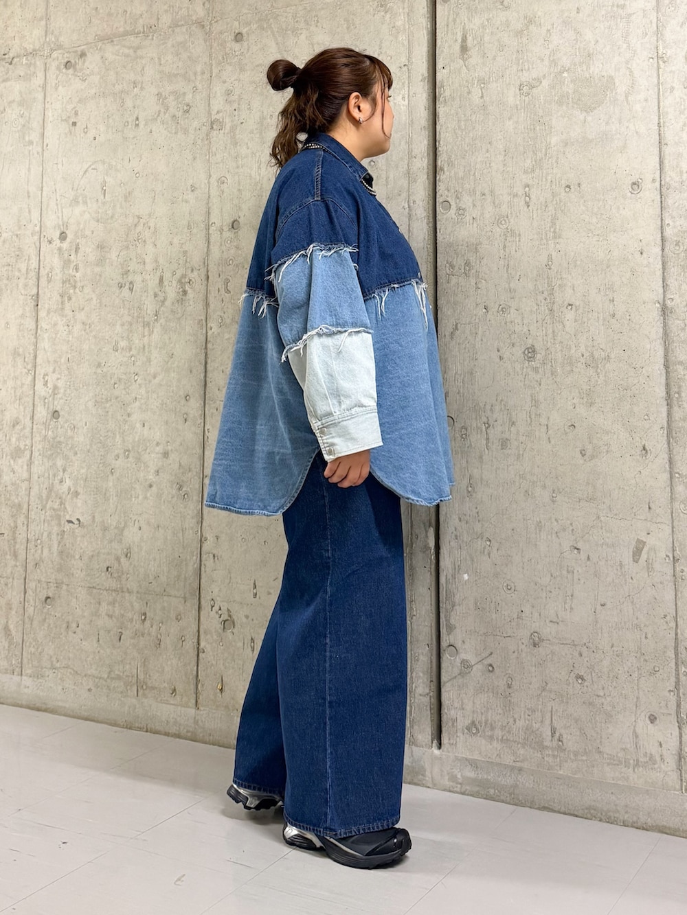 デニムシャツはオーバーサイズで体型をひろわず楽に着られて◎