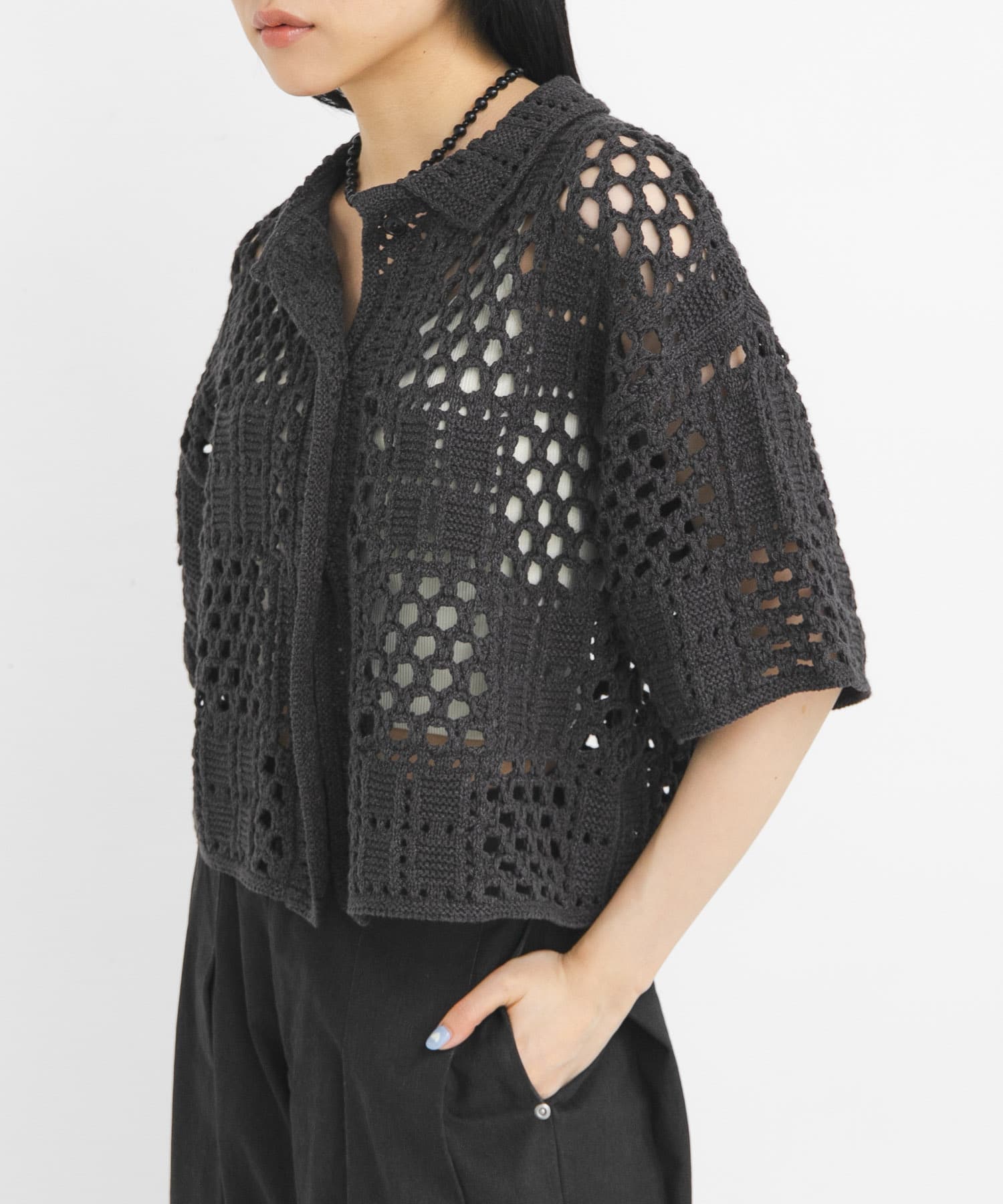 KBFらしいニットシャツはカジュアルなブロックレースで、サラッと羽織り使いもオススメ◎