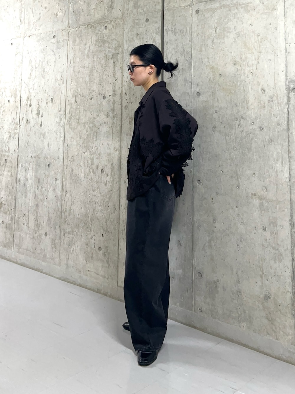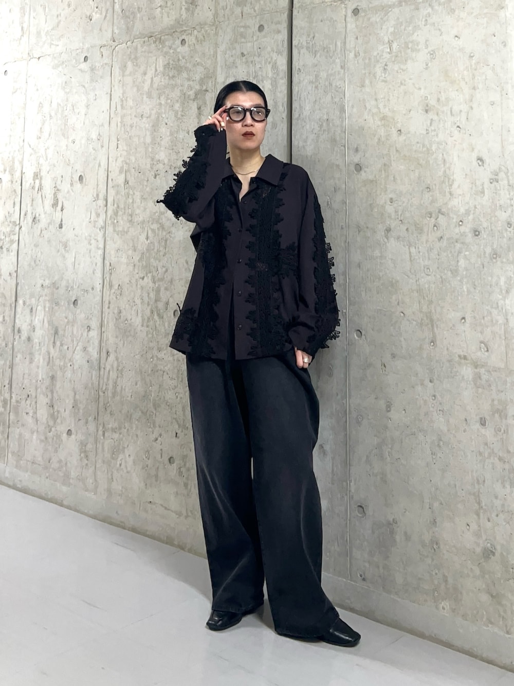 立体的なレースが目を引くレースシャツ