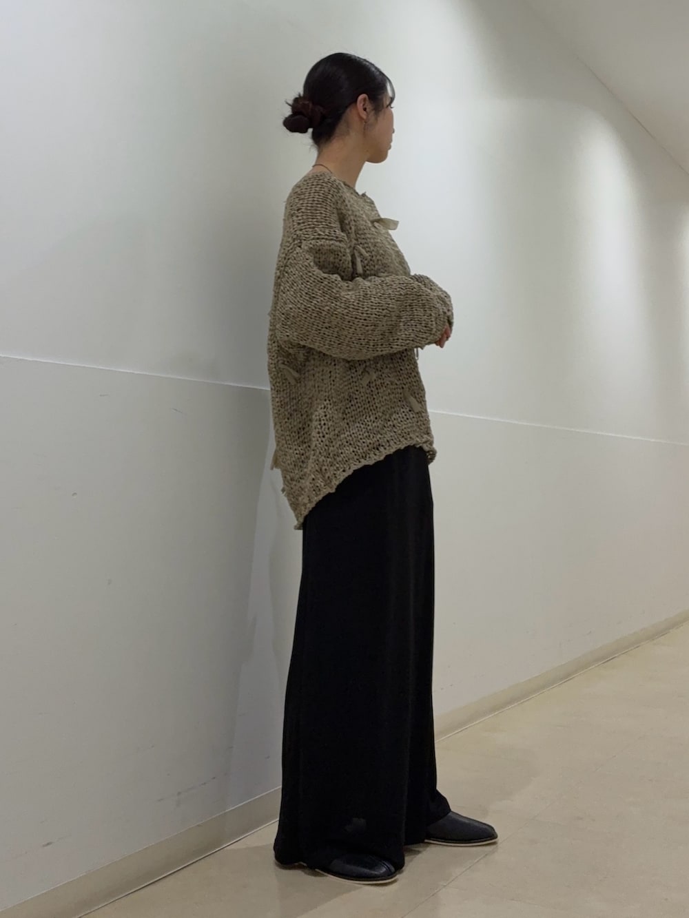 トップスのニットはリボンがついていても甘くなりすぎないのが使いやすいポイントです🌟