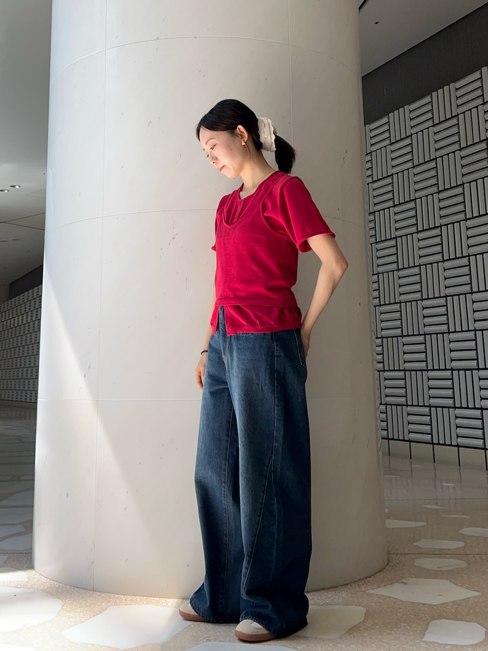 赤色がパッと目を惹き、お顔を明るくみせてくれます♩