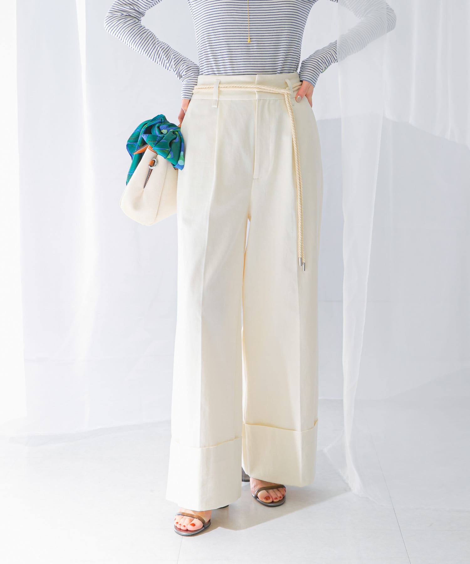 ベルト付ロールアップパンツ