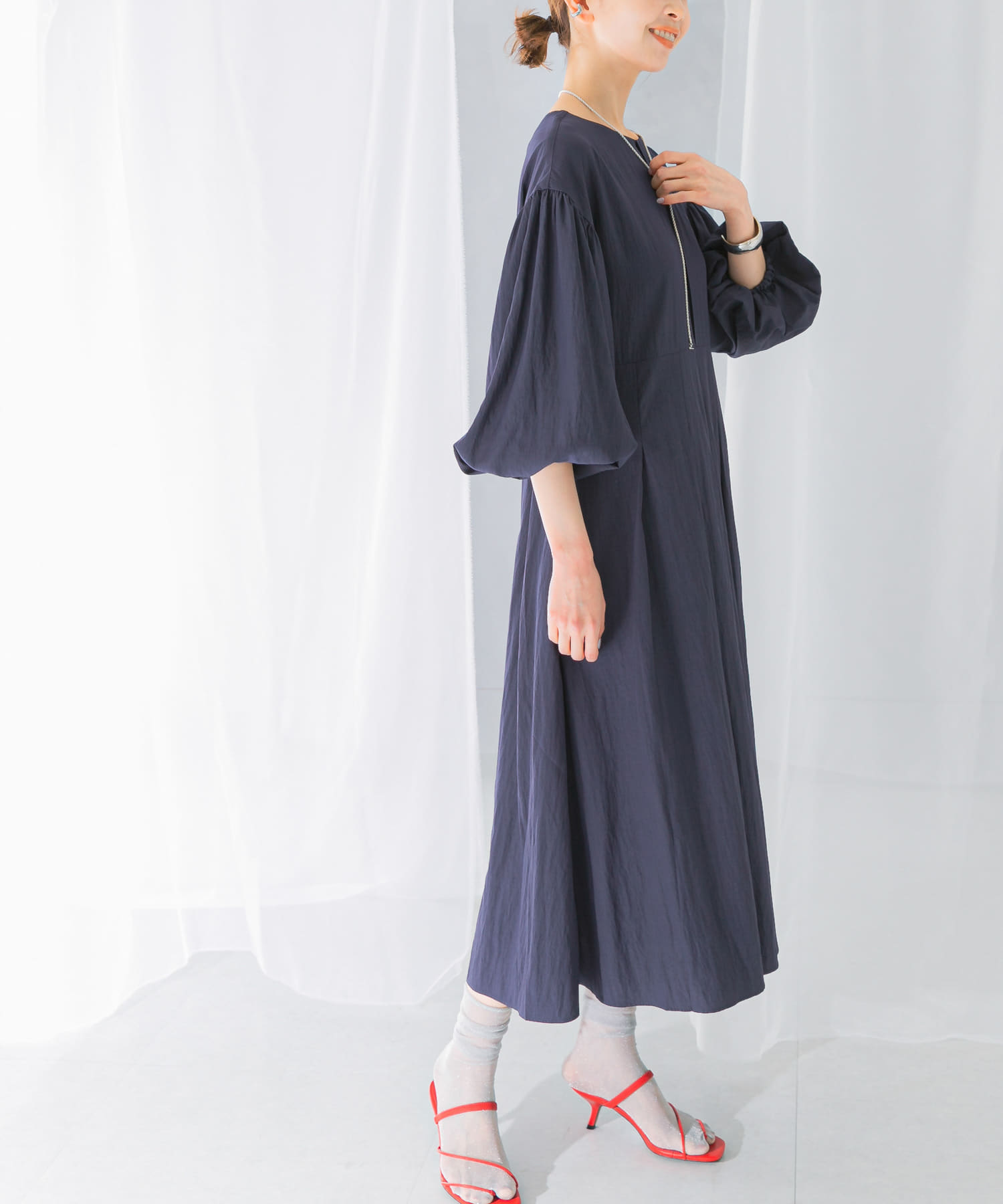 ROSSOボリュームスリーブタックワンピース- カラー: