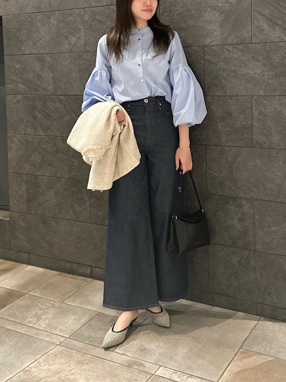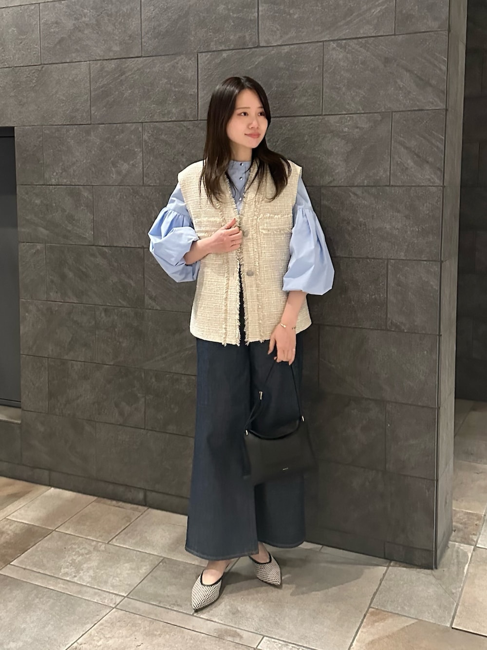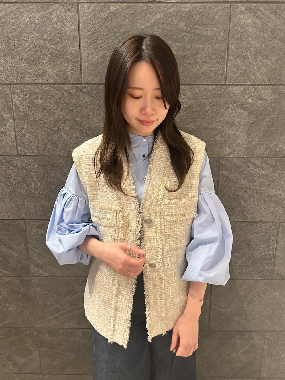 羽織るだけで上品さをプラスし、シンプルなコーディネートをトレンドスタイルにアップしてくれる大人ツイードジレ◎