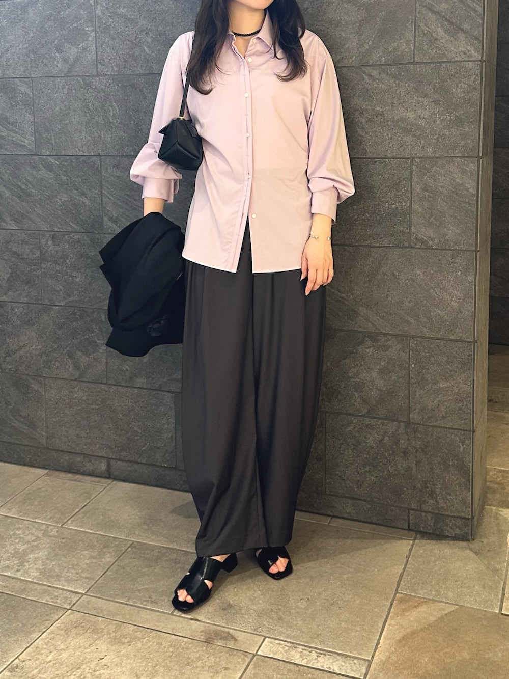 定番シャツコーデもライトパープルで一気に春仕様に🪻