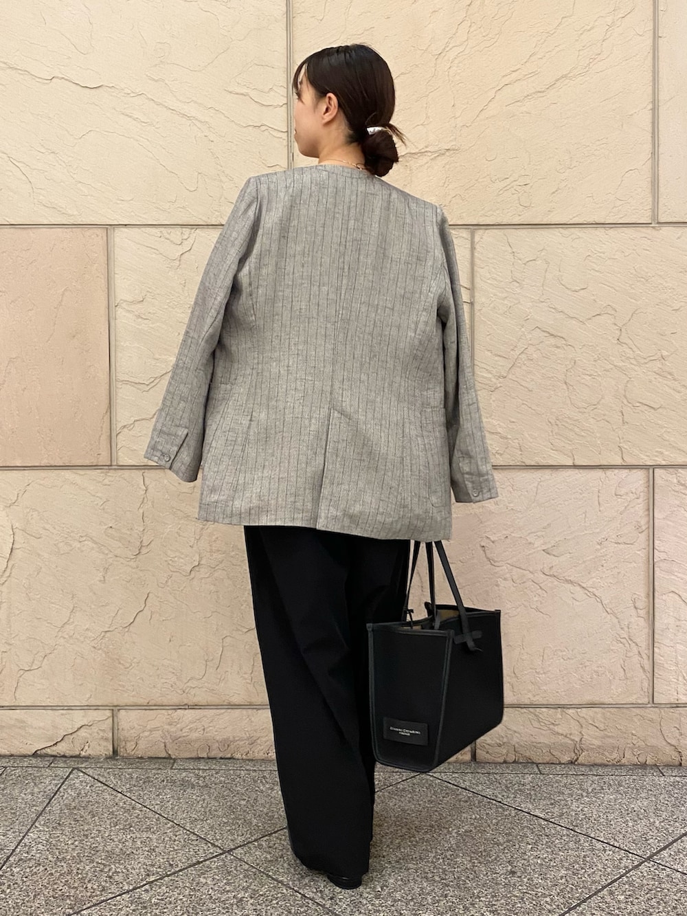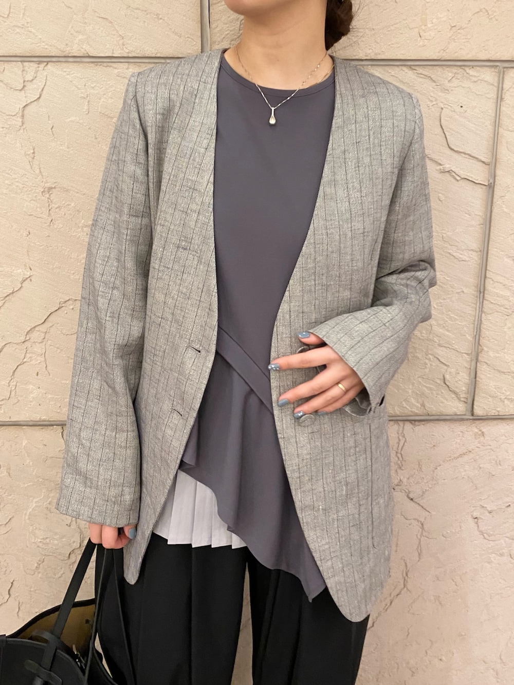 ROSSOラメリネンストライプノーカラージャケット- 着用カラー: